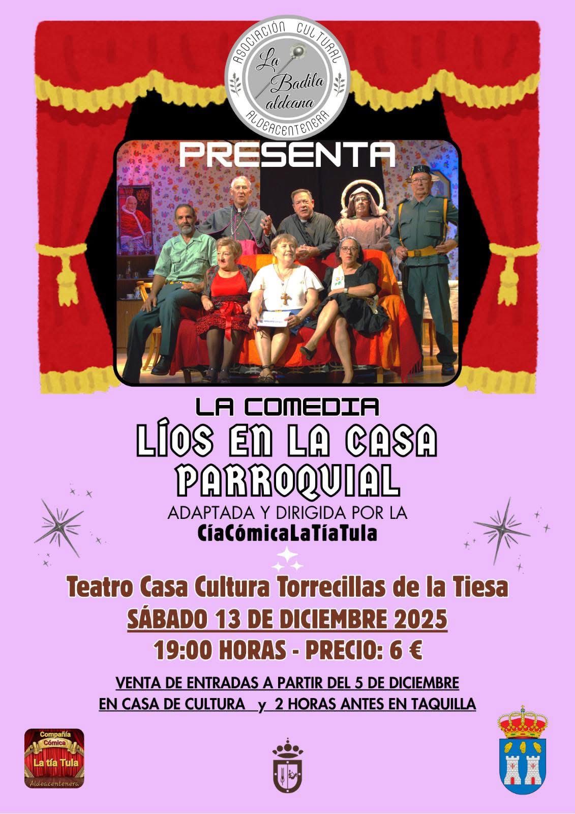 LA COMEDIA “LÍOS EN LA CASA PARROQUIAL” LLEGA A TORRECILLAS DE LA TIESA.