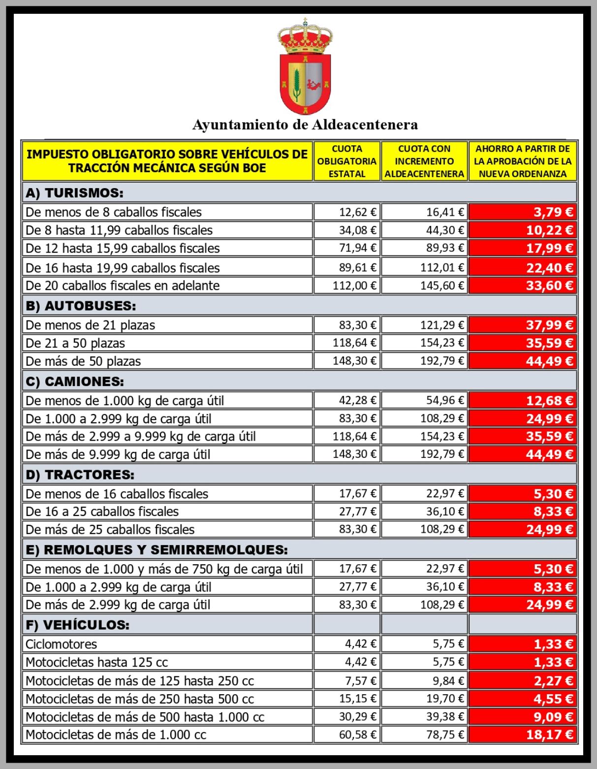 APROBADA LA SUPRESIÓN DEL INCREMENTO MUNICIPAL DE LAS CUOTAS DEL IMPUESTO SOBRE VEHÍCULOS DE TRACCIÓN MECÁNICA