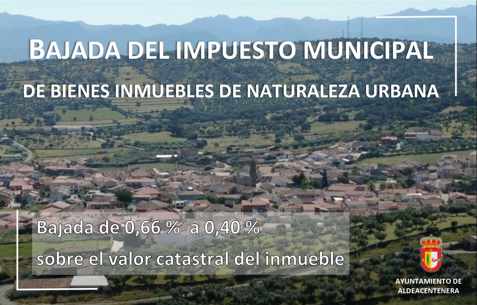 Siguiendo con nuestras políticas de bajada de impuestos a los vecinos de Aldeacentenera, el pasado viernes 8 de noviembre se aprobó, por unanimidad en el Pleno Extraordinario, la modificación de las cuotas de la Ordenanza Fiscal Reguladora del IBI de naturaleza urbana.