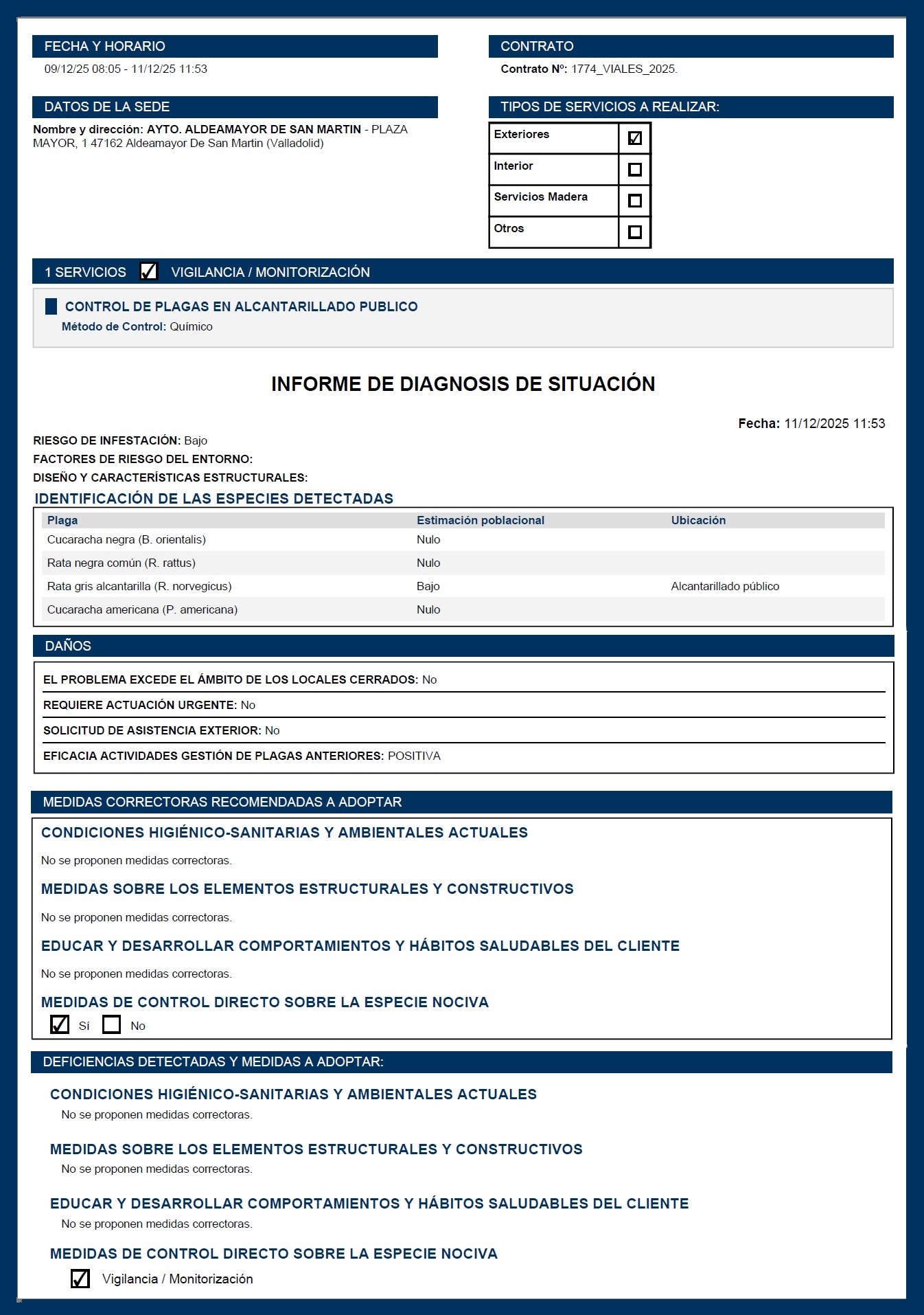 REALIZACIÓN DEL SERVICIO DE DESRATIZACIÓN Y DESINSECTACIÓN EN LA RED DE SANEAMIENTO MUNICIPAL