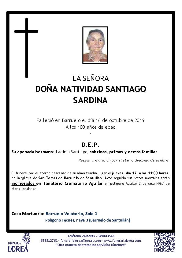Fallece Doña Natividad Santiago Sardina