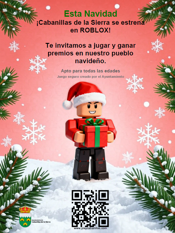 Estas Navidades estrenamos “Navidad en Cabanillas”, un juego oficial del Ayuntamiento en la popular plataforma Roblox, pensado para chicos y chicas a partir de 10-11 años.