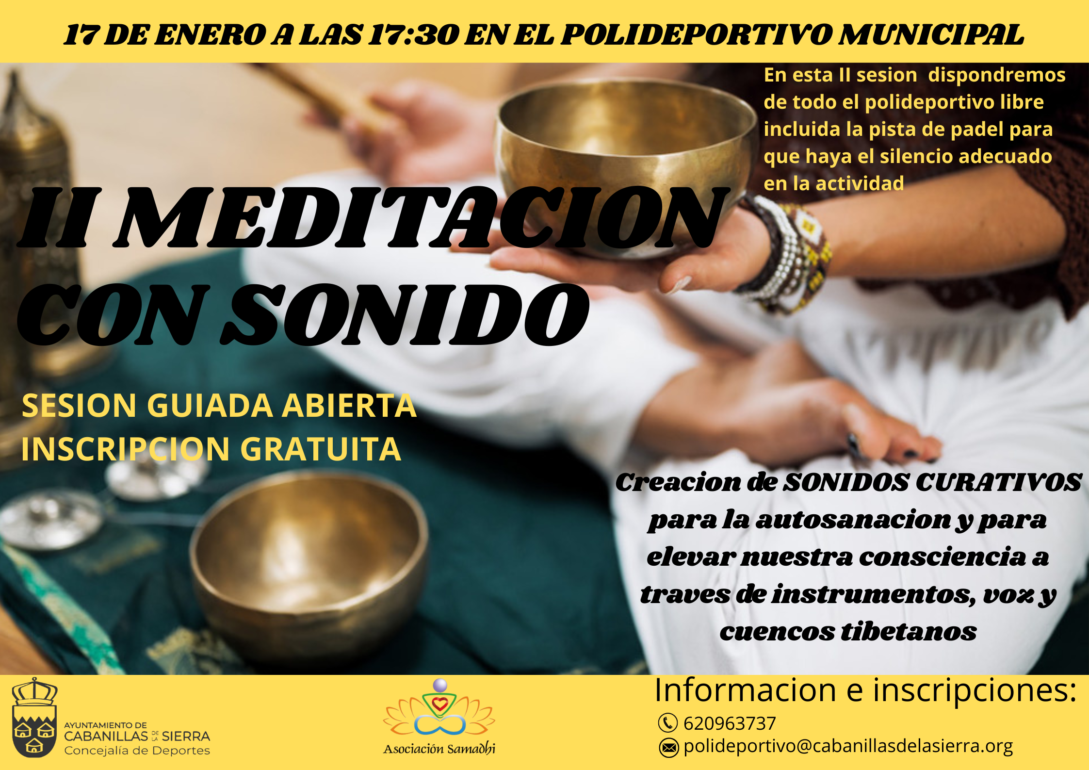 El sábado 17 de enero, tendremos en el polideportivo la II MEDITACION CON SONIDO, mediante instrumentos, voz, cuencos tibetanos... para la autosanación y elevar nuestra consciencia