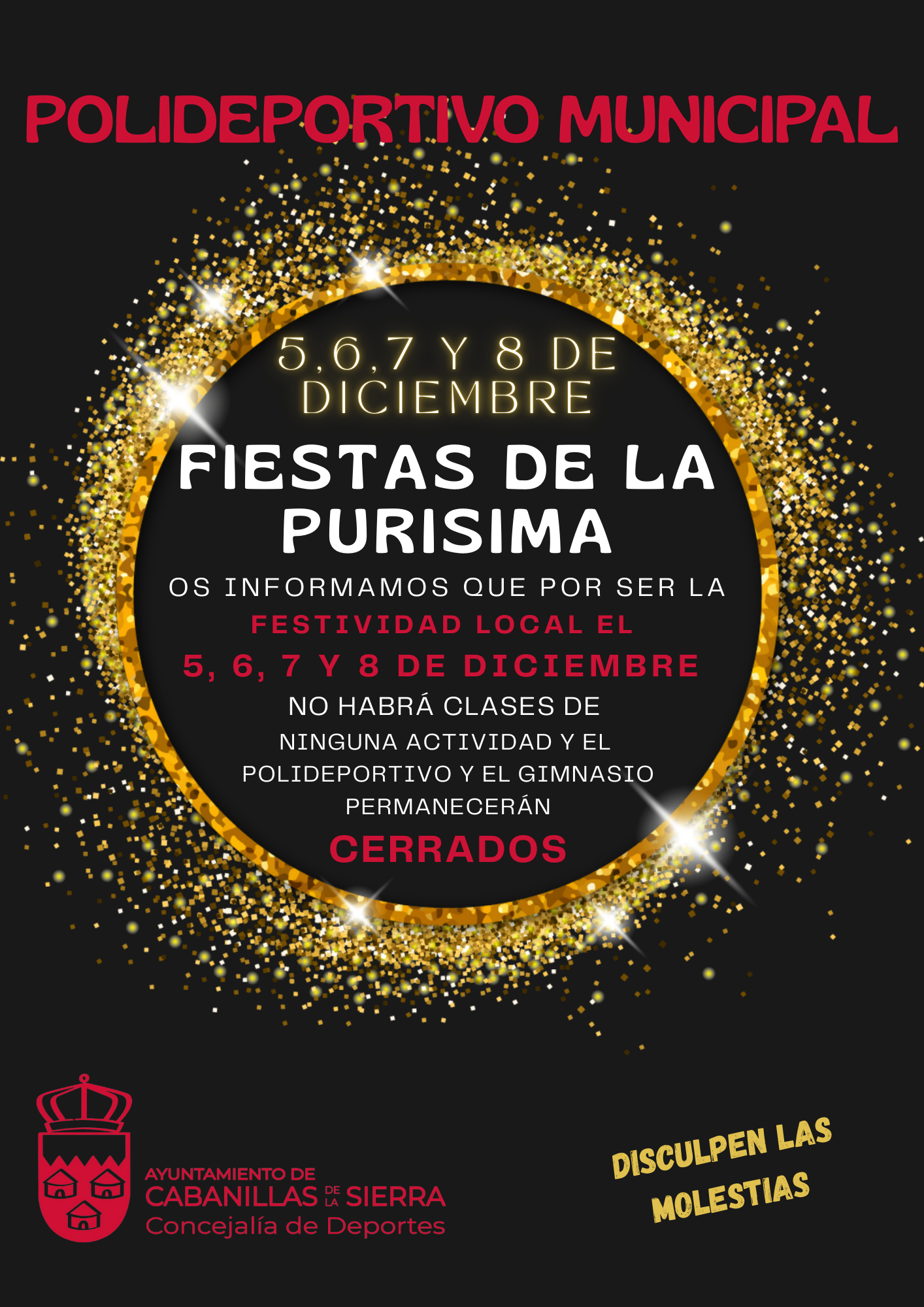 POLIDEPORTIVO Y GIMNASIO CERRADOS POR FIESTAS LOCALES