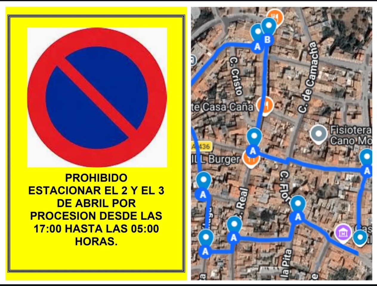 Con motivo de la próxima Procesión de Semana Santa, informamos a los vecinos y visitantes sobre las restricciones de movilidad en el centro: