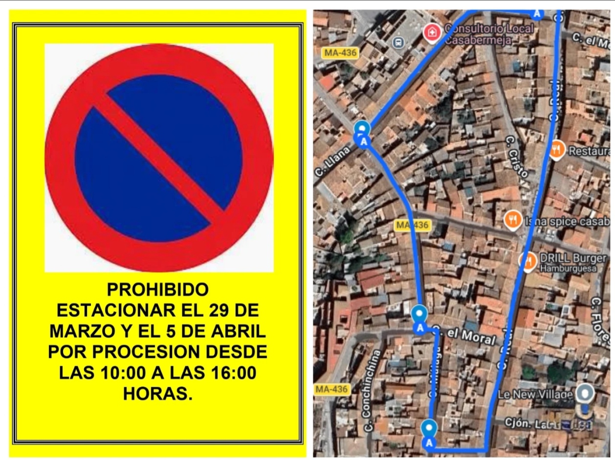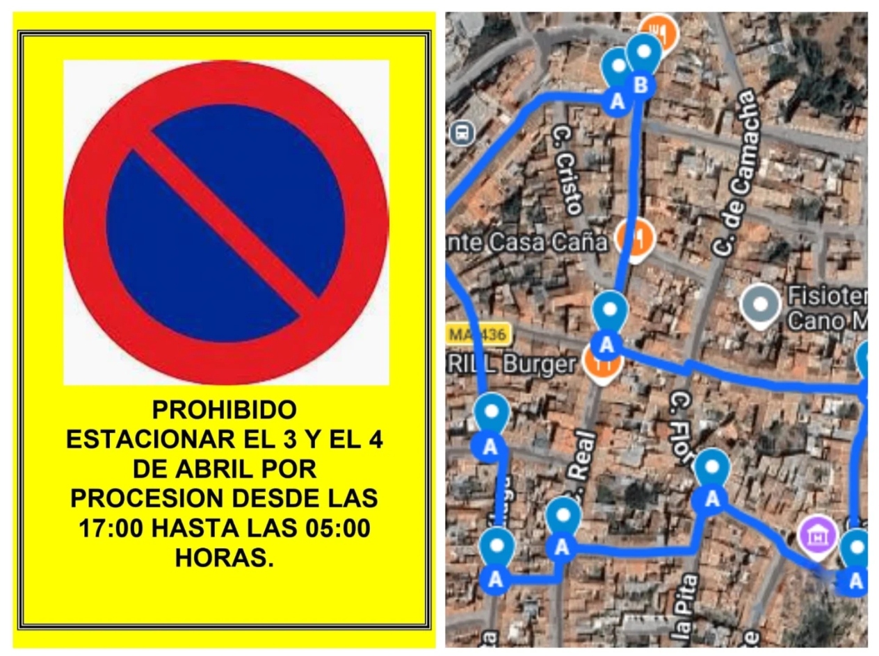 Con motivo de las próximas salidas procesionales en nuestro municipio, informamos de las siguientes restricciones de tráfico: