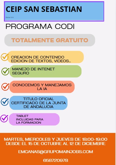 El CEIP San Sebastián acogerá el Programa CODI, una iniciativa totalmente gratuita dirigida a mejorar las competencias digitales.