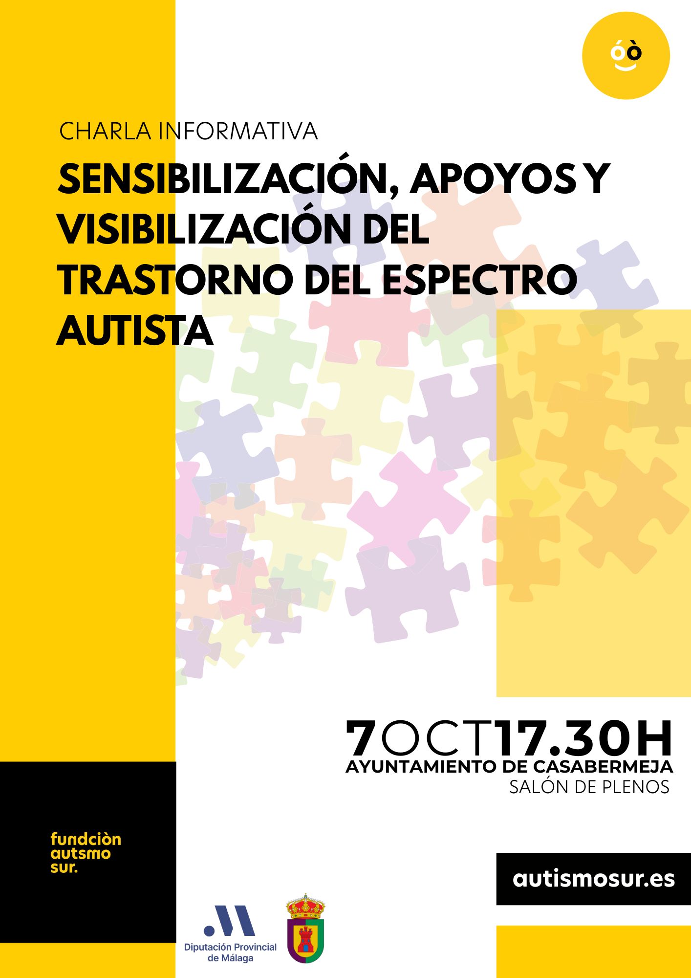El próximo 7 de octubre a las 17:30h, en el Salón de Plenos del Ayuntamiento de Casabermeja, tendremos un espacio para aprender y compartir sobre el Trastorno del Espectro Autista.
