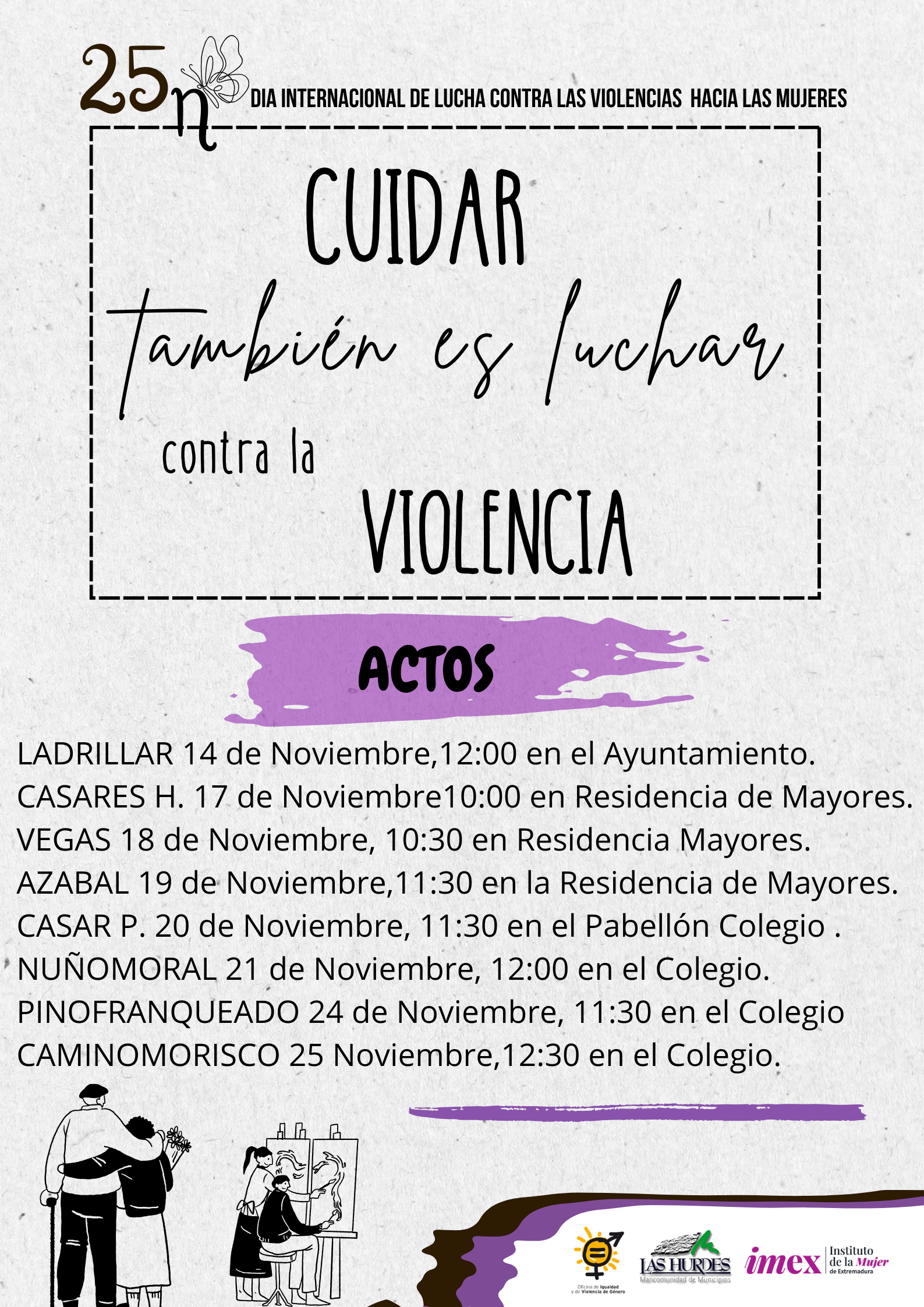 Como cada año, desde la Oficina de Igualdad se conmemorará el 25 de Noviembre con diversas actividades y actos que ya se están realizando por toda la Comarca Hurdana, este año la campaña se llama "CUIDAR TAMBIEN ES LUCHAR CONTRA LA VIOLENCIA" y está centrada en el desarrollo de los cuidados como forma de promocionar los buenos tratos y así lograr realizar una prevención de la violencia desde las edades más tempranas.