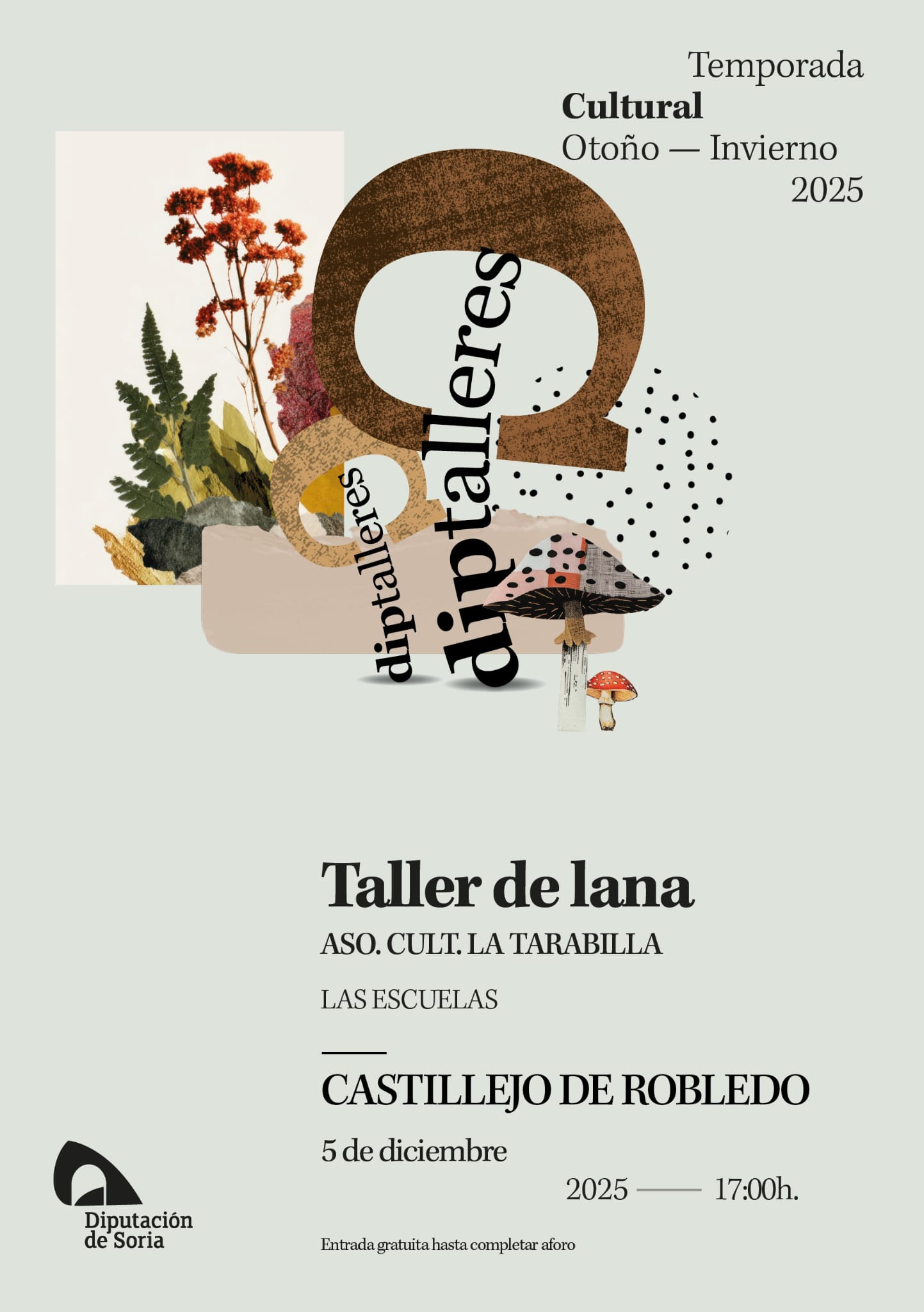 Dentro de la Temporada Cultural Otoño–Invierno 2025 de la Diputación de Soria, llega el Taller de Lana organizado por la Asociación Cultural La Tarabilla.