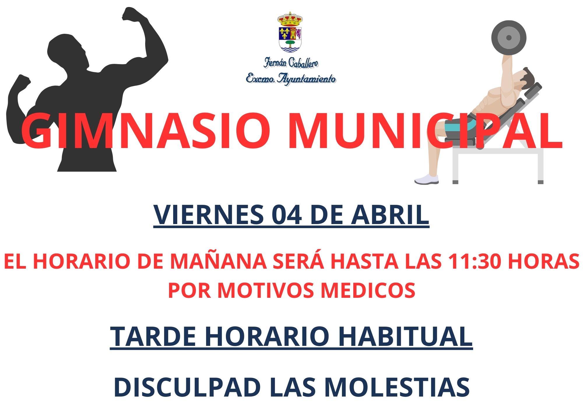 EL HORARIO DE MAÑANA SERÁ HASTA LAS 11:30 HORAS POR MOTIVOS MEDICOS