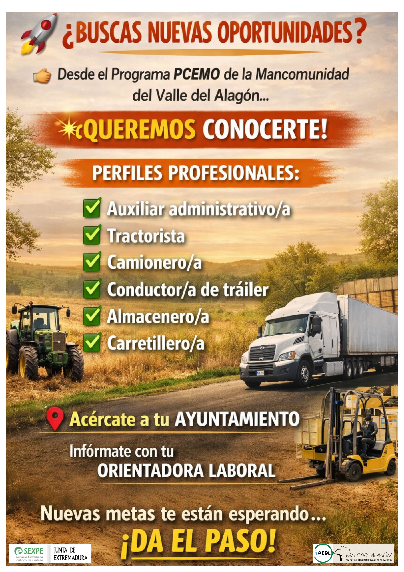 Desde el programa PCEMO tenemos como objetivo fomentar la empleabilidad, la competitividad del tejido empresarial y el desarrollo socioeconómico de los municipios del Valle del Alagón.