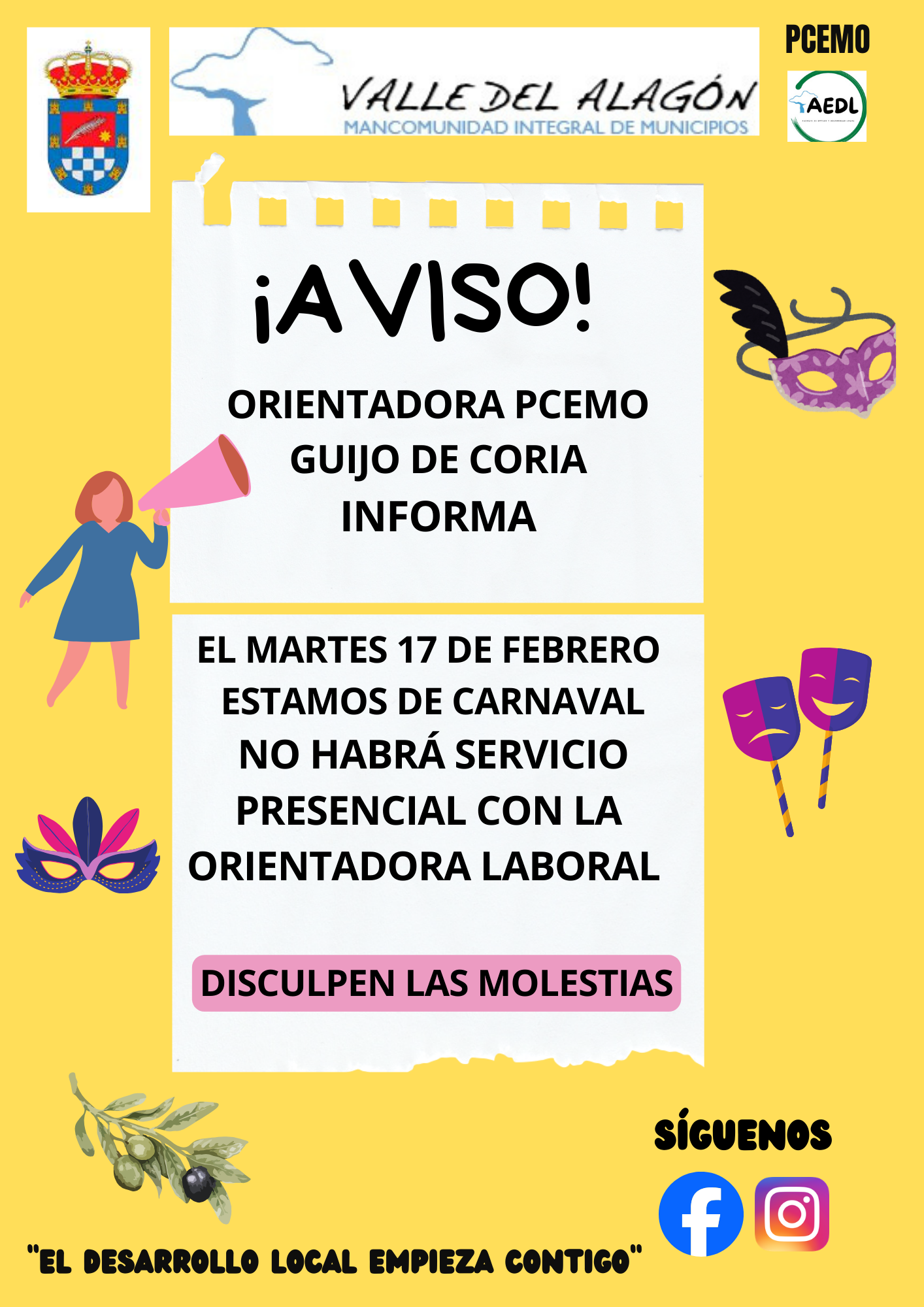 Síguenos en las Redes Sociales para estar informado (Boletines de empleo, cursos, ayudas activas, nuestros pueblos, …