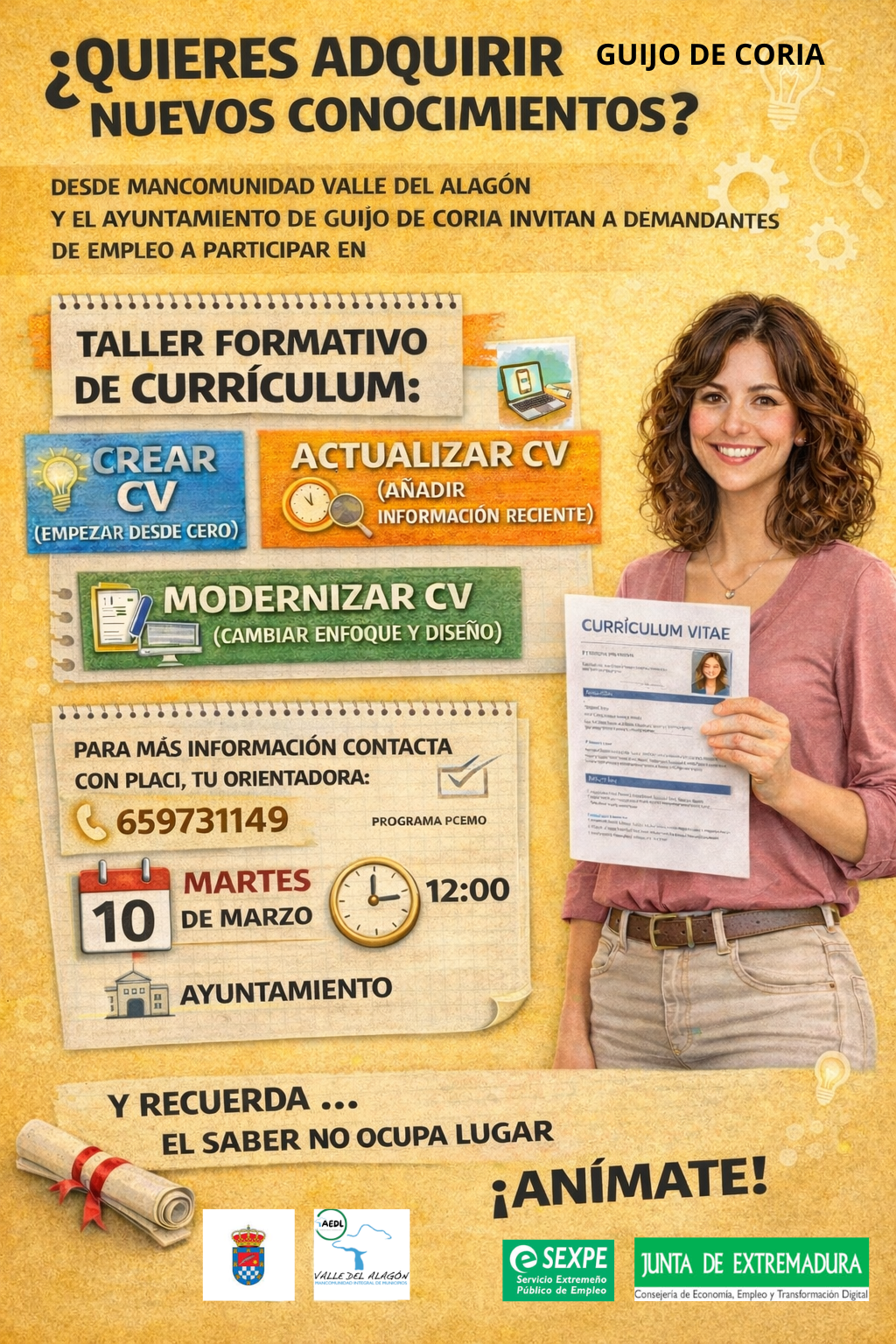 📍 Acércate a tu AYUNTAMIENTO e Infórmate con tu ORIENTADORA o llamar por teléfono.