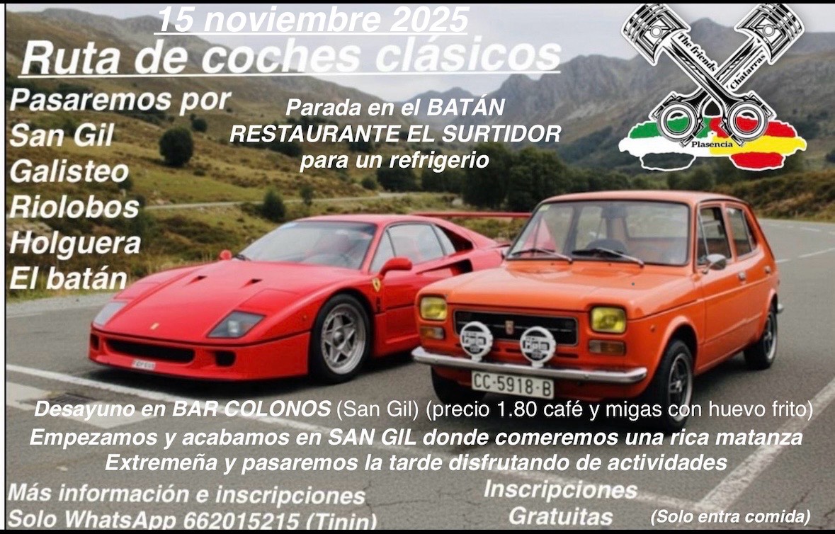 Se comunica que va a pasar por Holguera una ruta de coches clásicos, sobre unos 70 u 80 coches y unas 50 motos