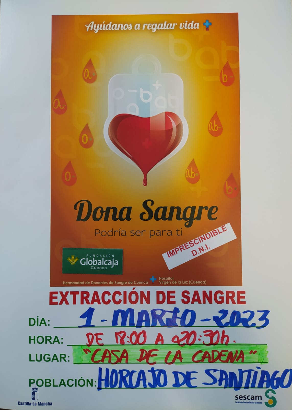 Miércoles 1 de marzo, en la Casa de la Cadena de 18:00-20:30 h, te esperamos para la donación de sangre.