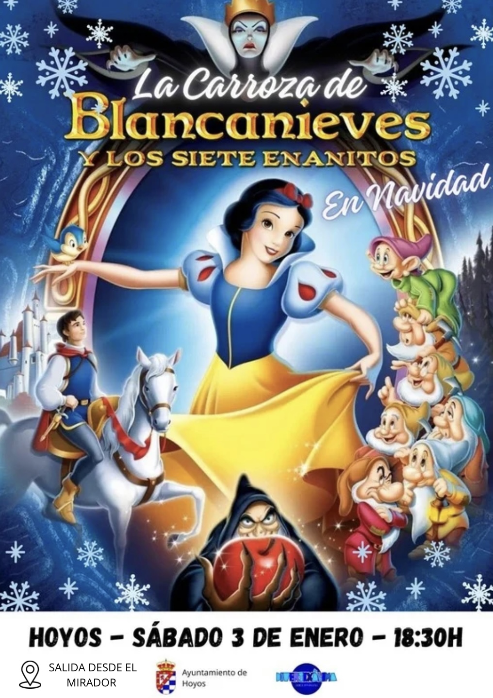 Informamos a la ciudadanía que el sábado, 3 de enero de 2026, a las 18:30 h tendrá lugar la carroza de "Blancanieves y los siete enanitos".