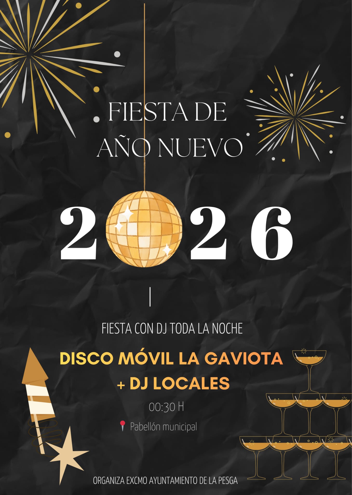 El Ayuntamiento organiza la fiesta de Año Nuevo el 31 de diciembre a las 00:30 h en el Pabellón Municipal.