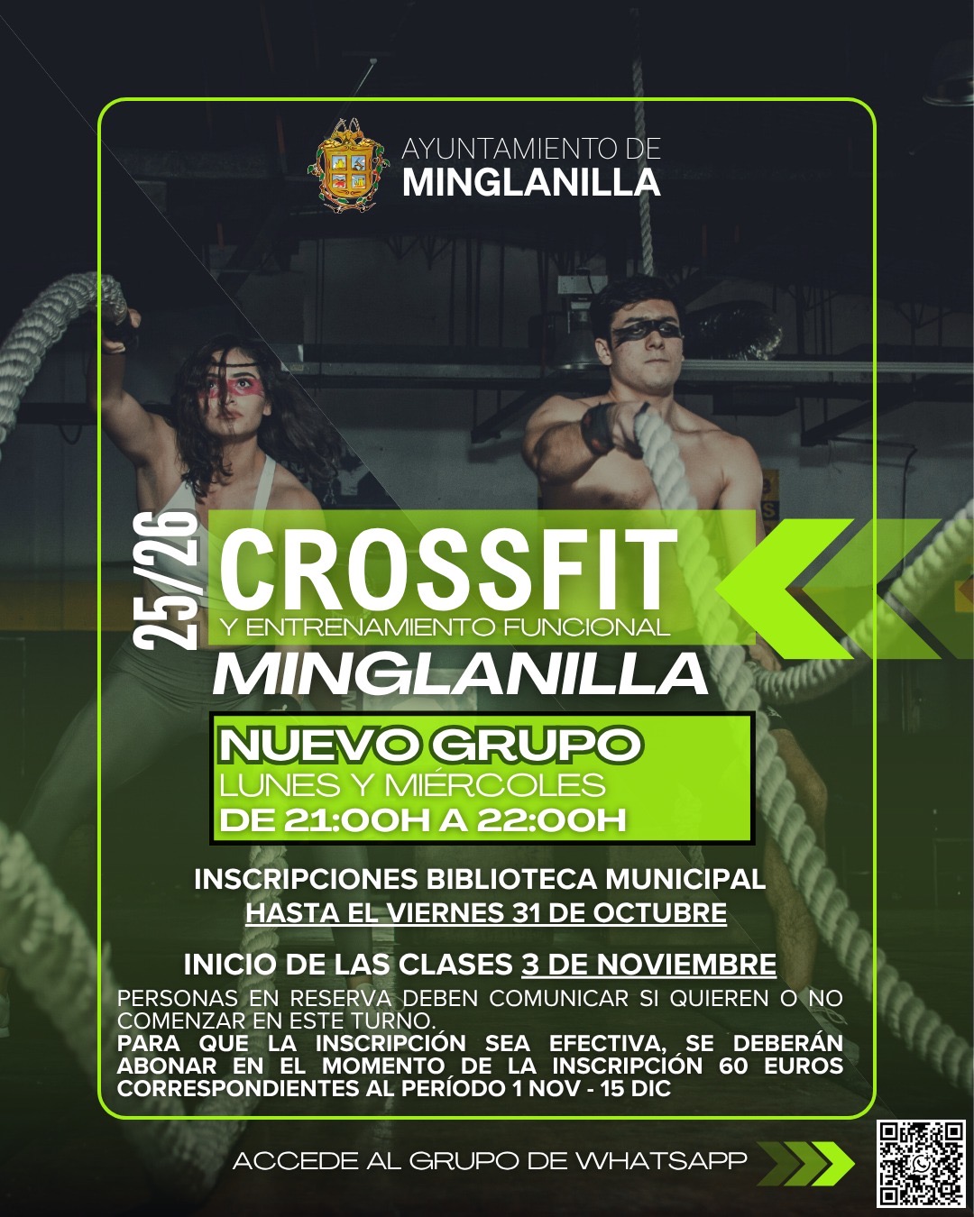 Desde hoy y hasta el viernes 31 de octubre se abren las inscripciones para el nuevo turno de CROSSFIT Y ENTRENAMIENTO FUNCIONAL en Minglanilla.