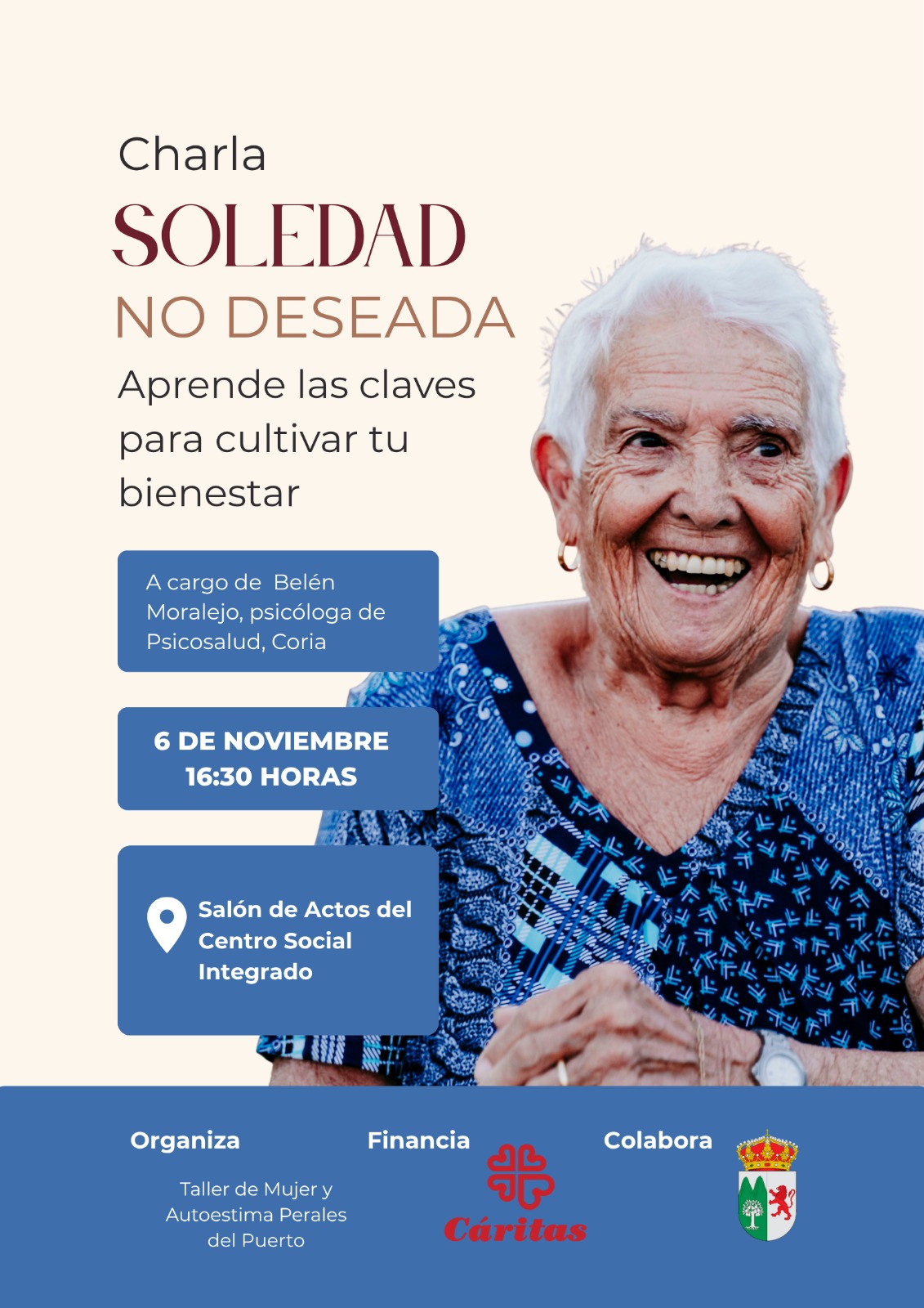 El encuentro abordará cómo afrontar la soledad no deseada y promover el autocuidado y el bienestar emocional en esta etapa de la vida. A cargo de Belén Moralejo, psicóloga de Psicosalud (Coria)