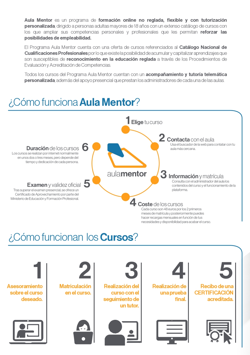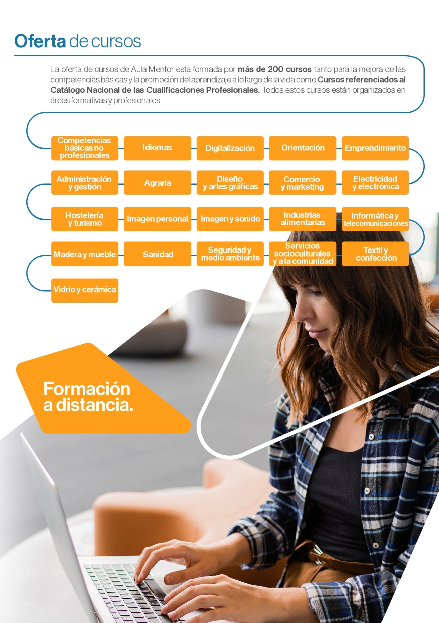 Queremos ayudar a que toda la ciudadanía conozca las oportunidades de formación que Aula Mentor tiene para ofrecer y se anime a matricularse en nuestro más de 200 cursos.