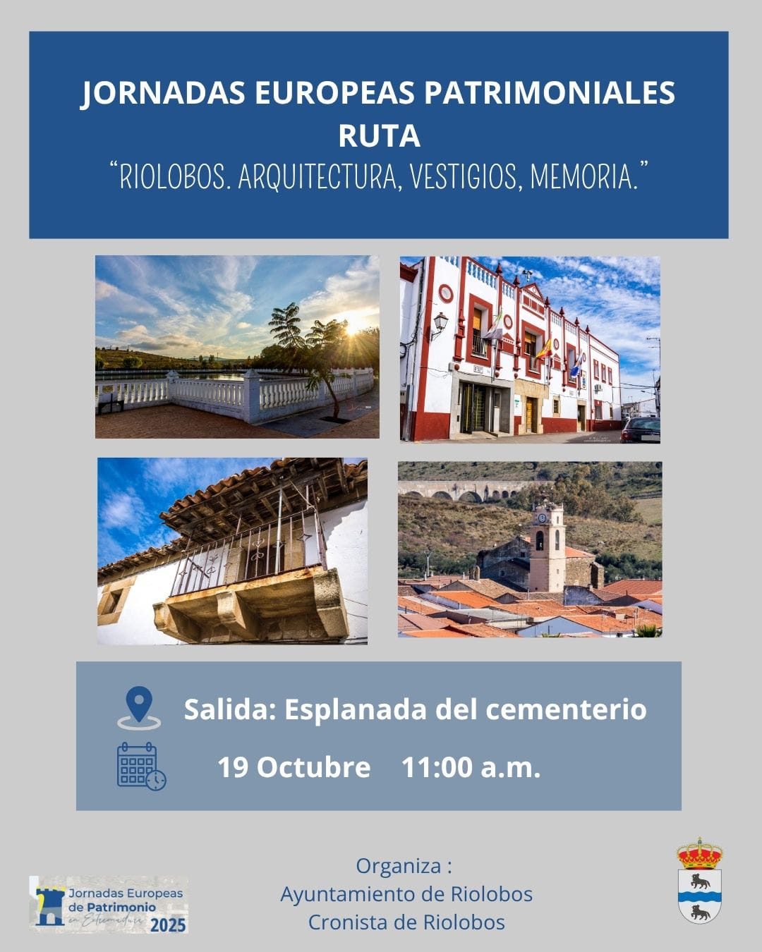 Recordamos que el Próximo domingo 19, Riolobos acogerá una edición de las jornadas Europeas del Patrimonio, dirigida por José Vidal Lucia. Cronista oficial de Riolobos.