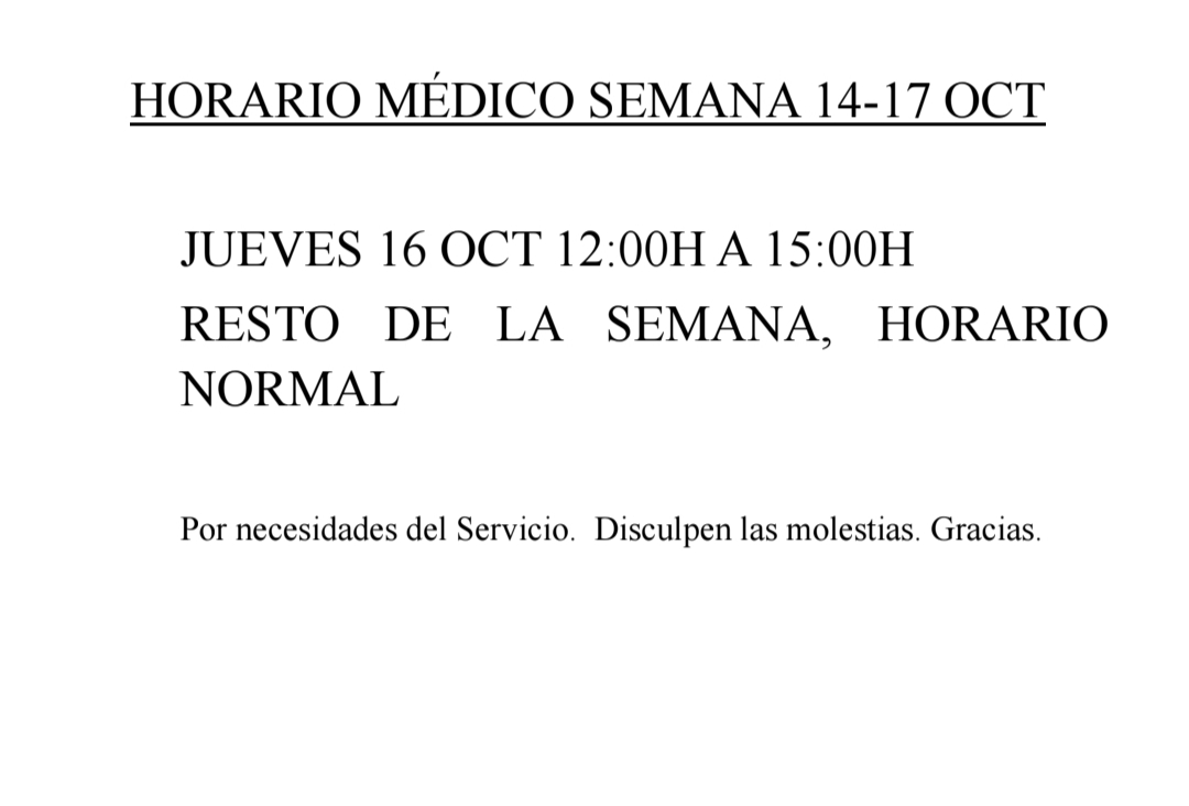 Adjuntamos horario de la consulta médica para esta semana.