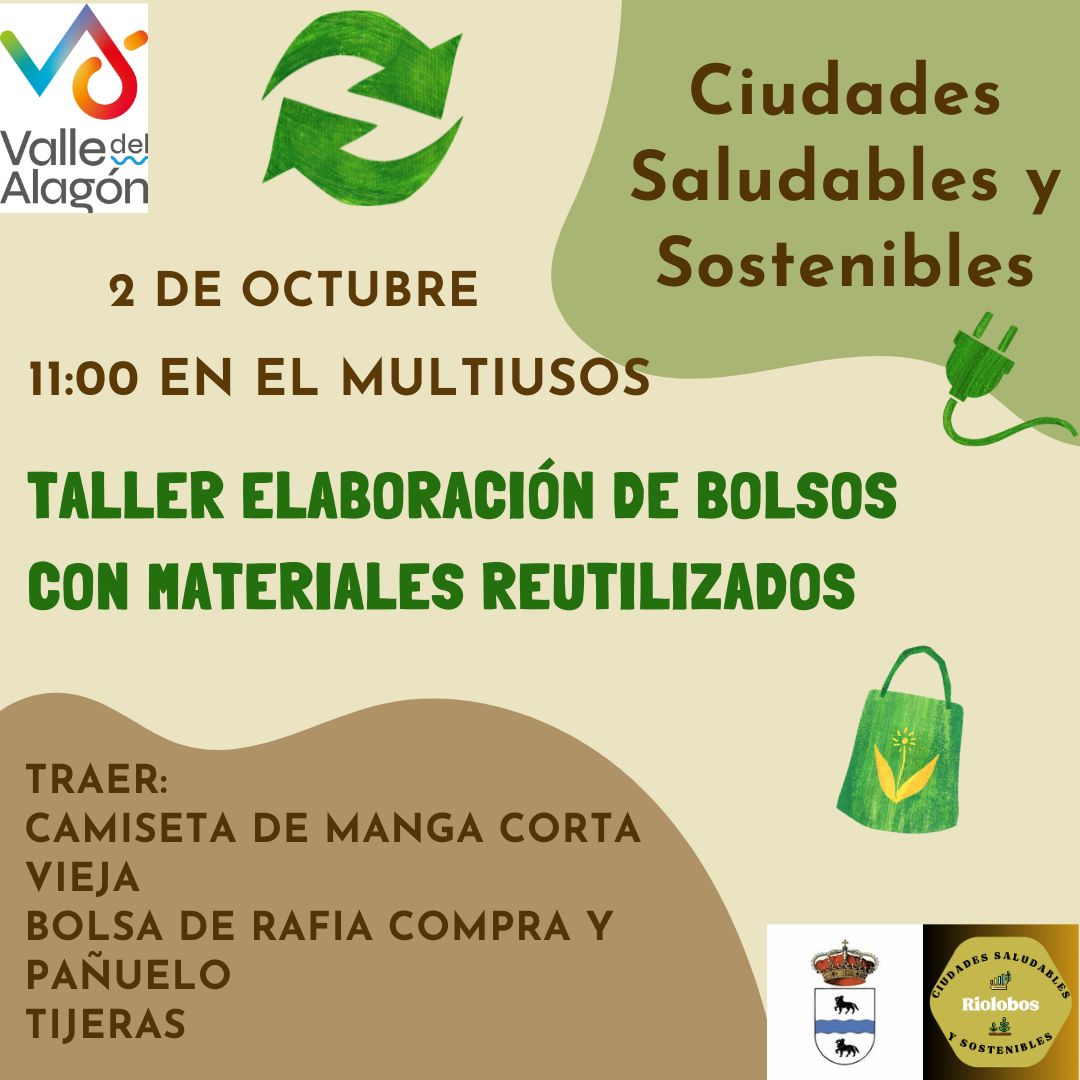 Ciudades Saludables y Sostenible realiza mañana jueves 2 de octubre un taller de elaboración de bolsos con materiales reutilizados. A las 11:00 h en el Multiusos.
