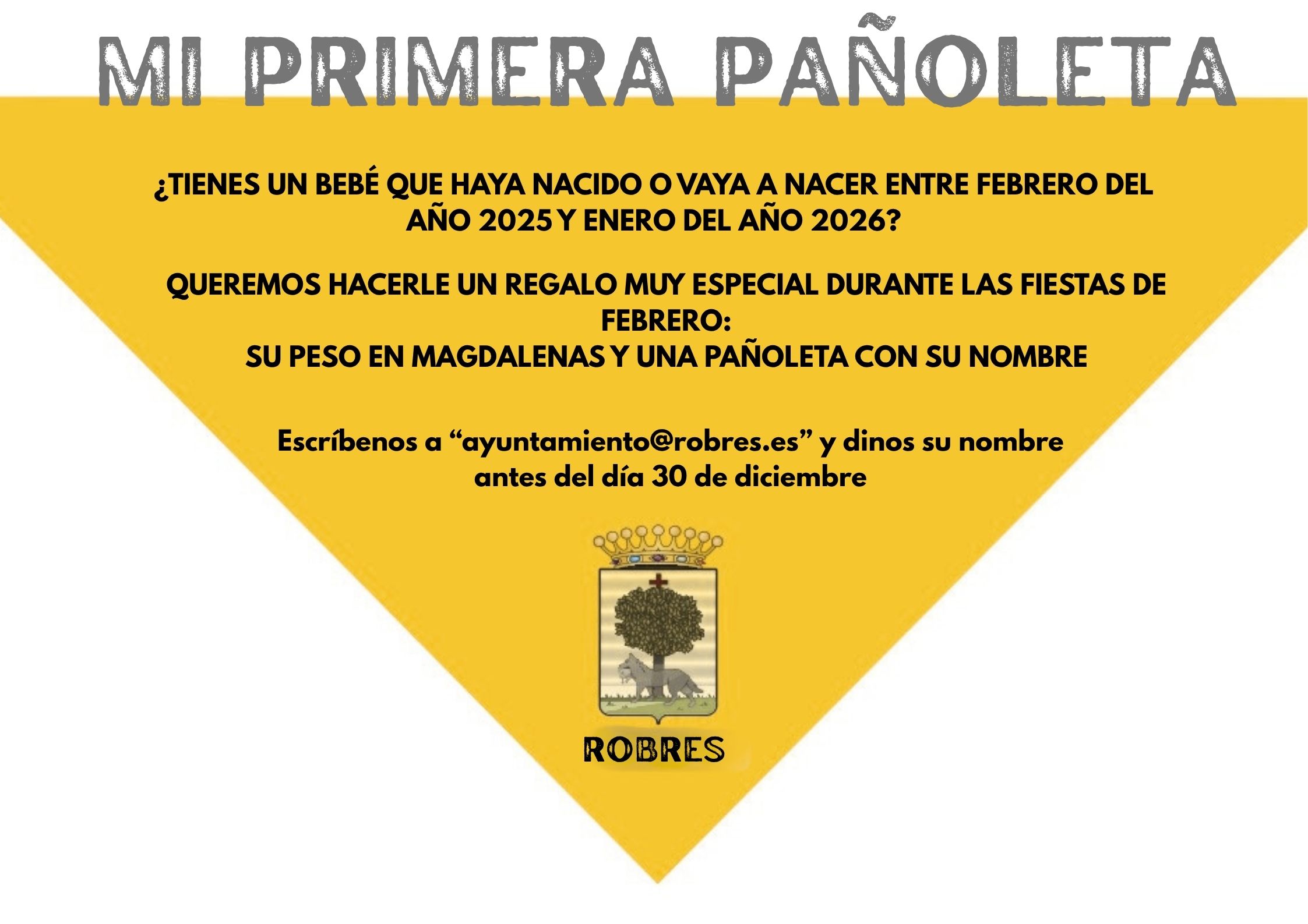 📫 Ponte en contacto con el Ayuntamiento, a través de la dirección de correo "ayuntamiento@robres.es" antes del 30 de diciembre