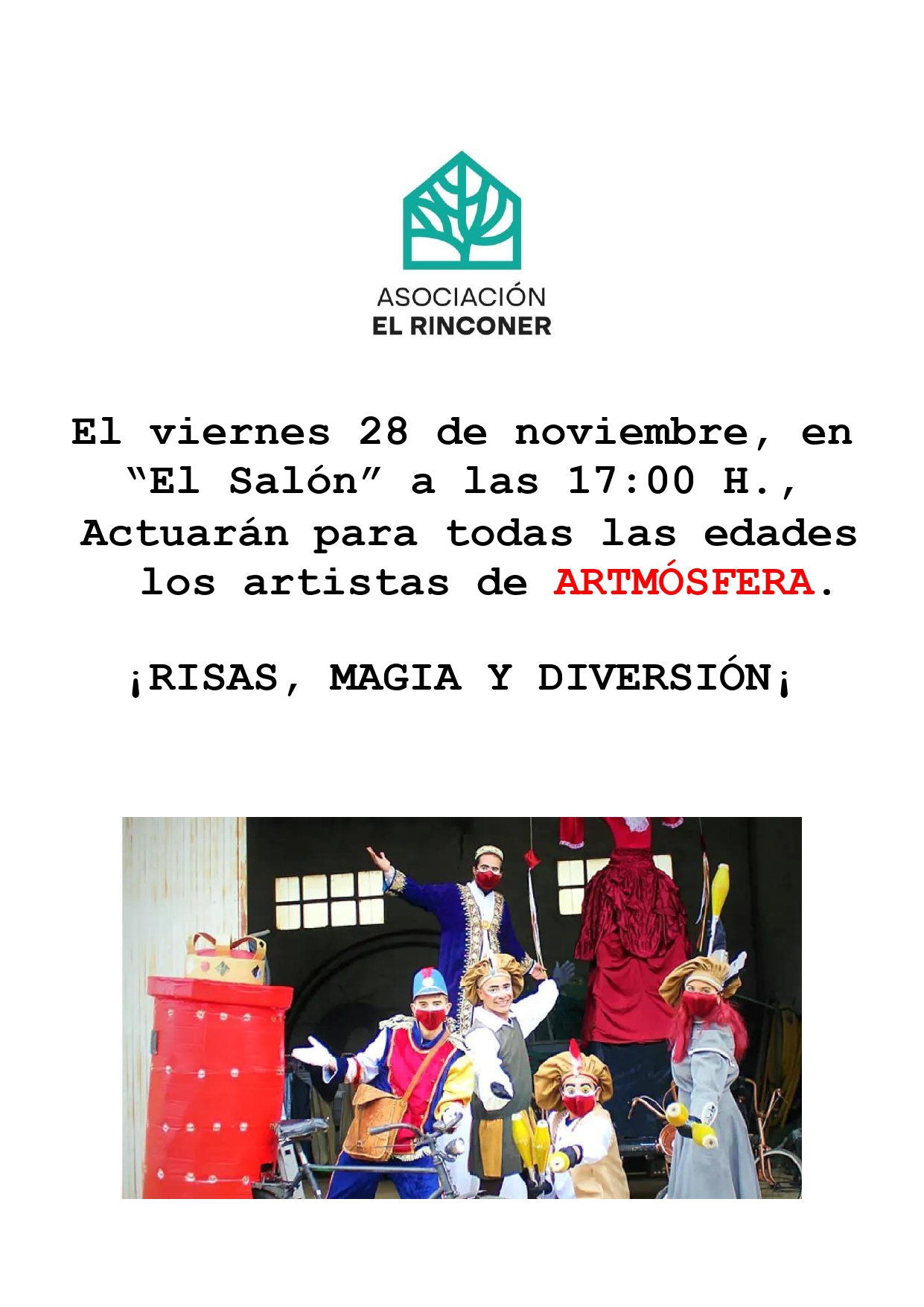 Se recuerda que esta tarde a las 17:00 horas en el Salón Municipal, la Asociación El Rinconer nos trae a Artmósfera para pasar una tarde divertida.