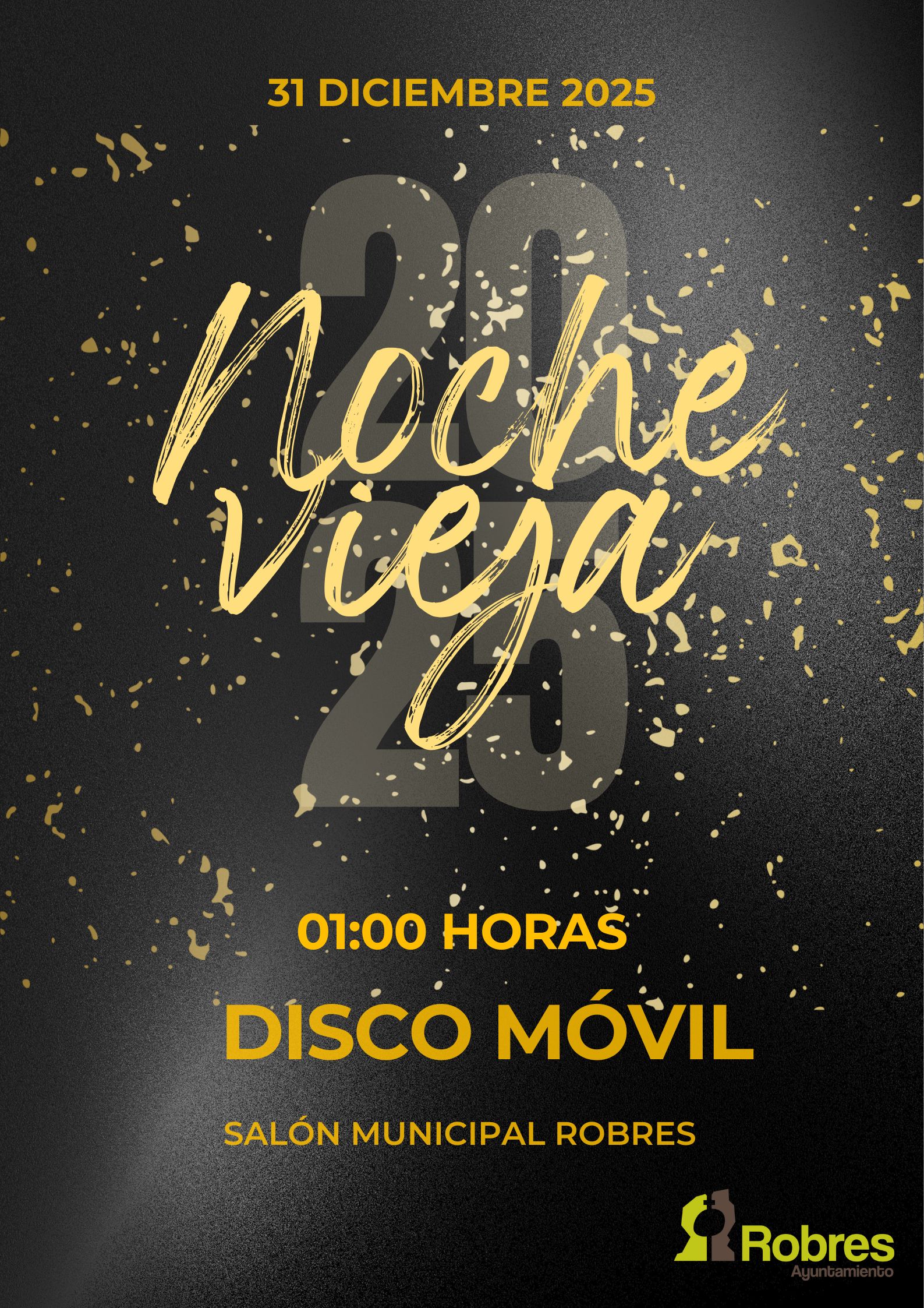 El Ayuntamiento informa de que, con motivo de la celebración de Nochevieja 2025, se habilitará disco móvil en el salón municipal.