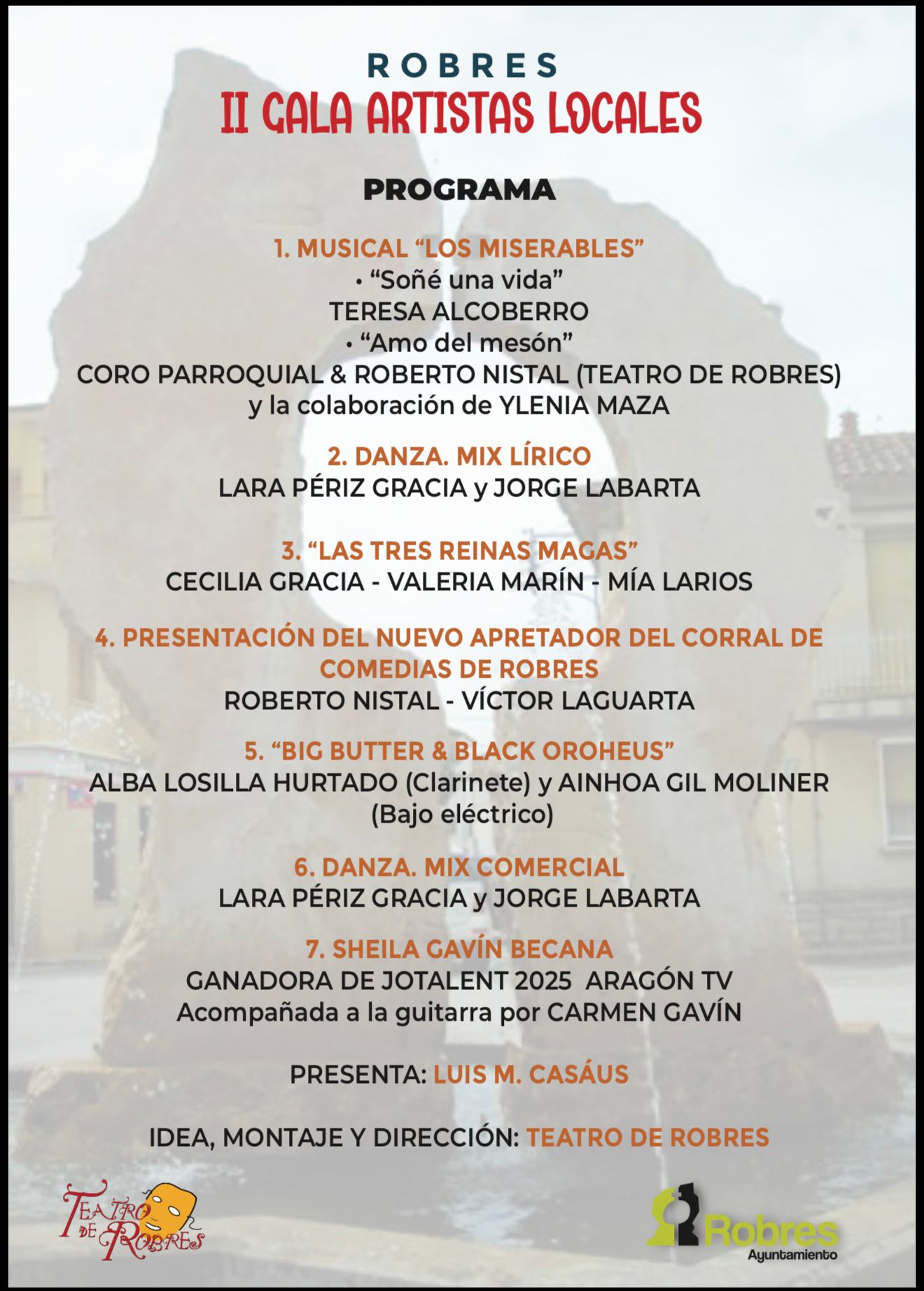 Robres se prepara para celebrar la Il Gala de Artistas Locales, un encuentro cultural que reúne el talento de nuestro municipio y demuestra, una vez más, la vitalidad artística de nuestro pueblo. La cita será el domingo 7 de diciembre de 2025, a las 18:00 h, en el Salón Municipal.