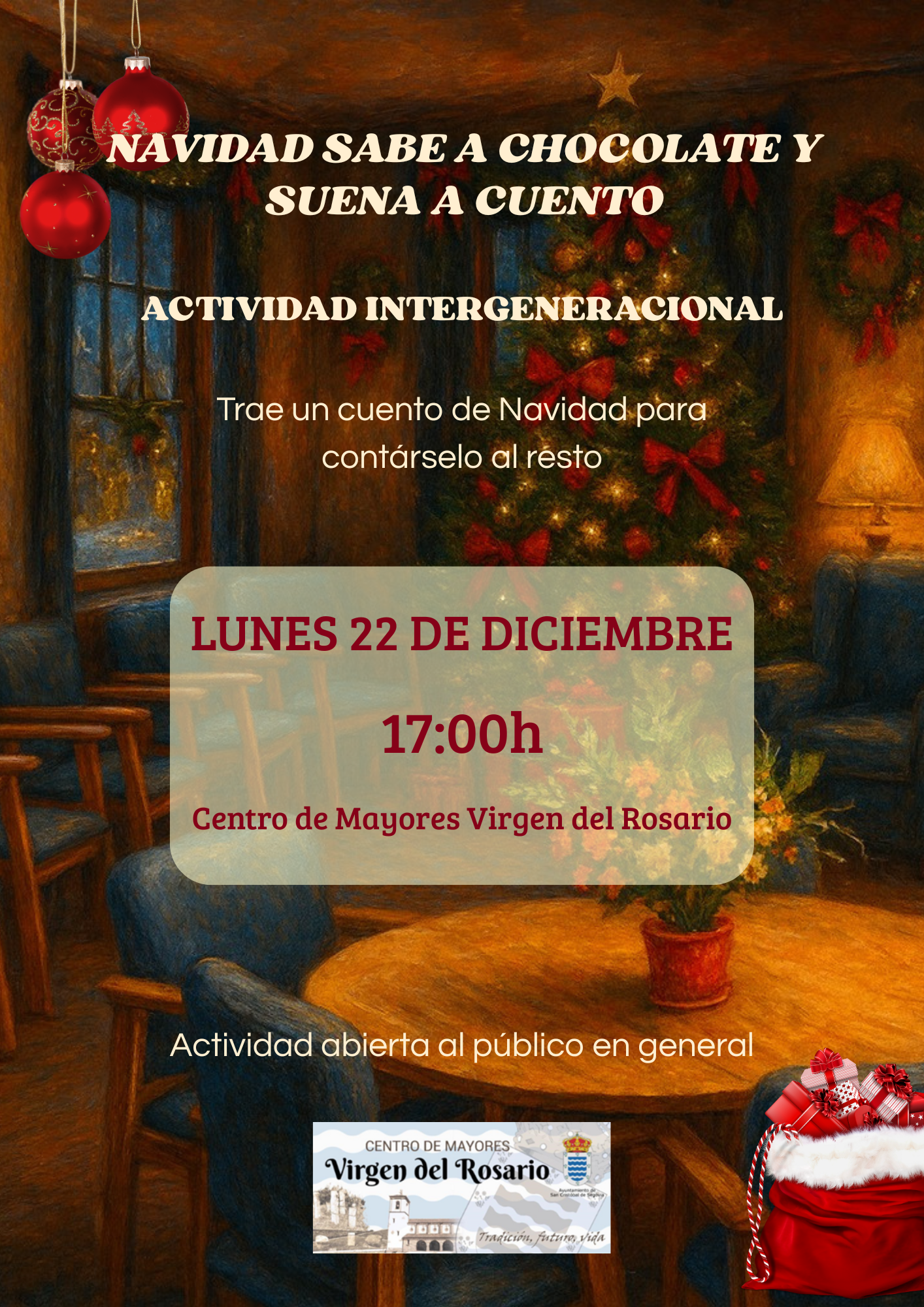 El próximo lunes 22 de diciembre a las 17:00 h, el Centro de Mayores Virgen del Rosario se llena de magia con una actividad intergeneracional muy especial.