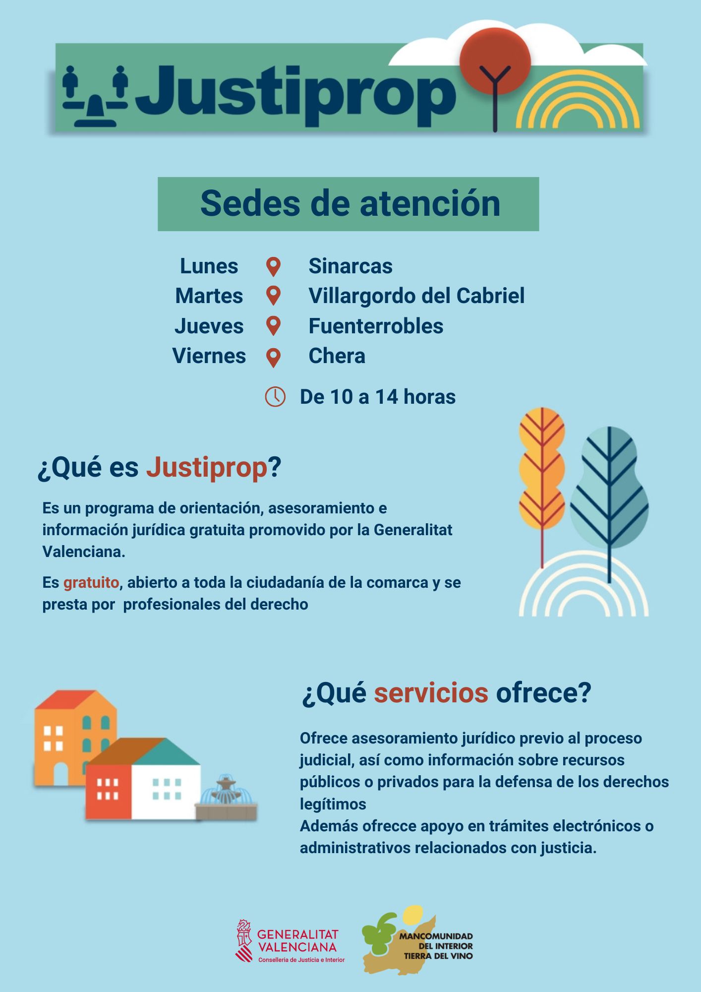 Se recuerda a tod@s l@s vecin@s que el servicio JUSTIPROP se preseta todos los lunes en el Ayuntamiento de Sinarcas, en horario de 10:00 a 14:00.
