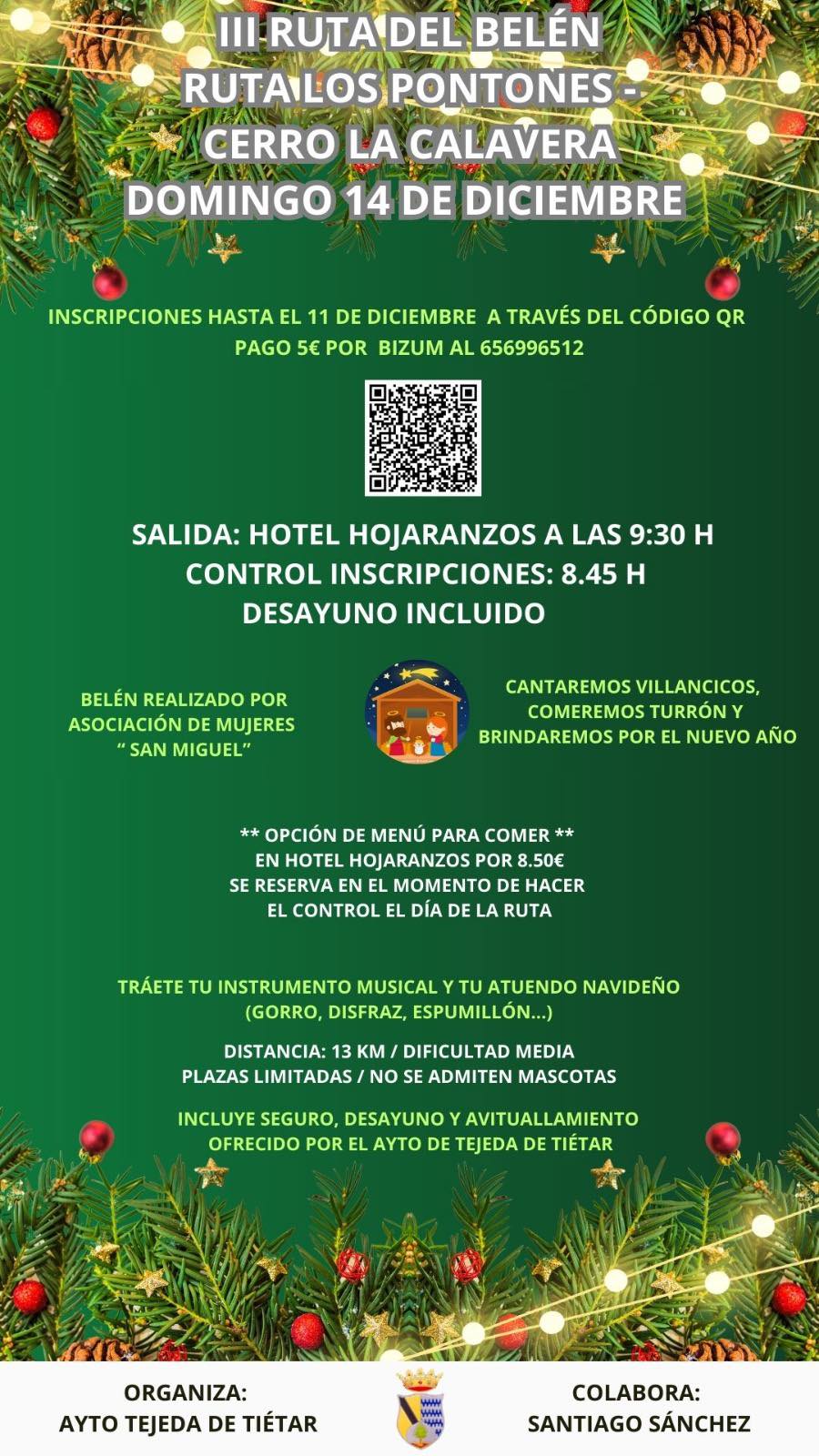 Se adjunta cartel de la Ruta del Belen, Ruta de los Pontones, Cerro de la Calavera del domingo día 14 de diciembre de 2025.
