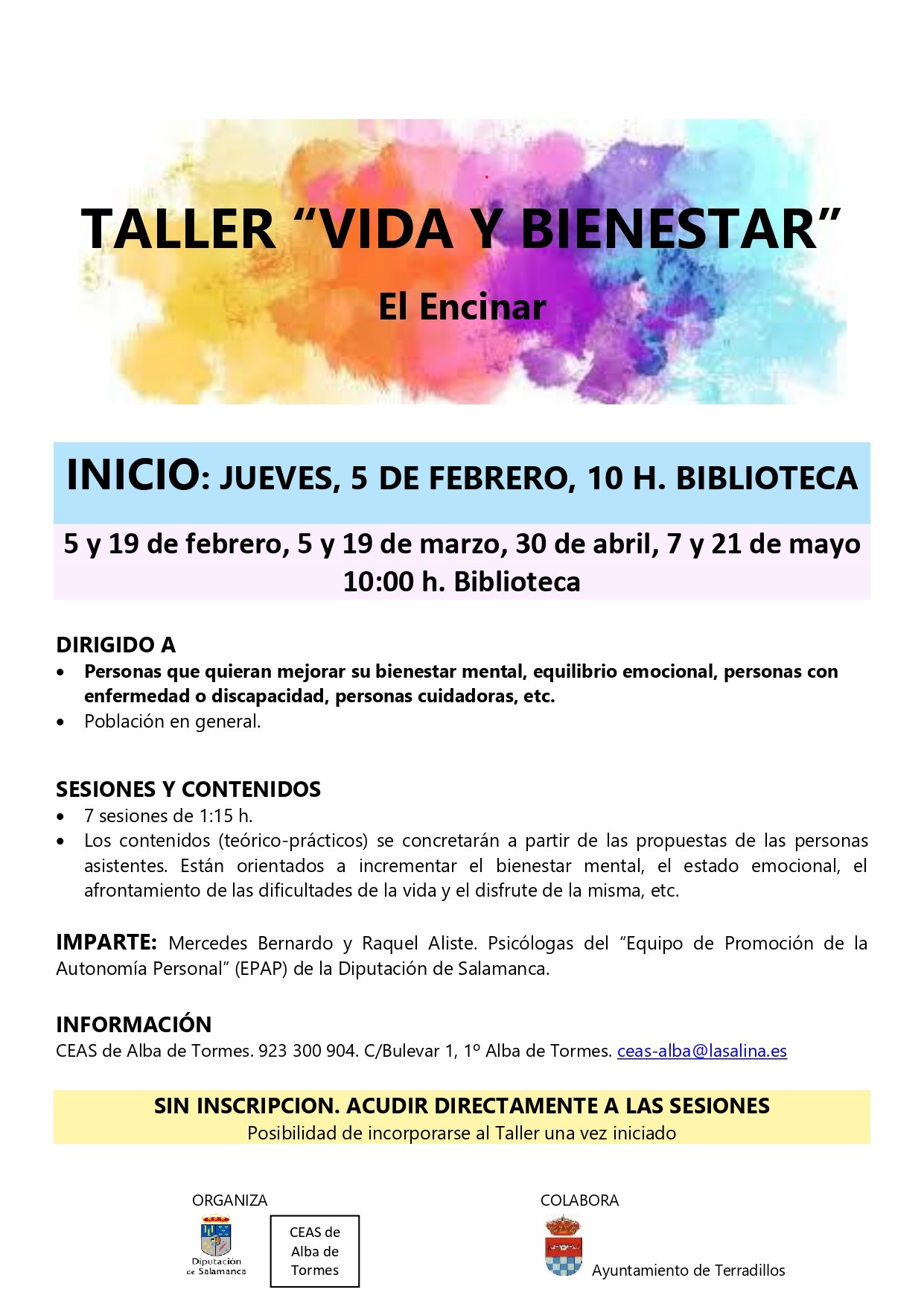 - No es necesario inscribirse. Acudir directamente a las sesiones.