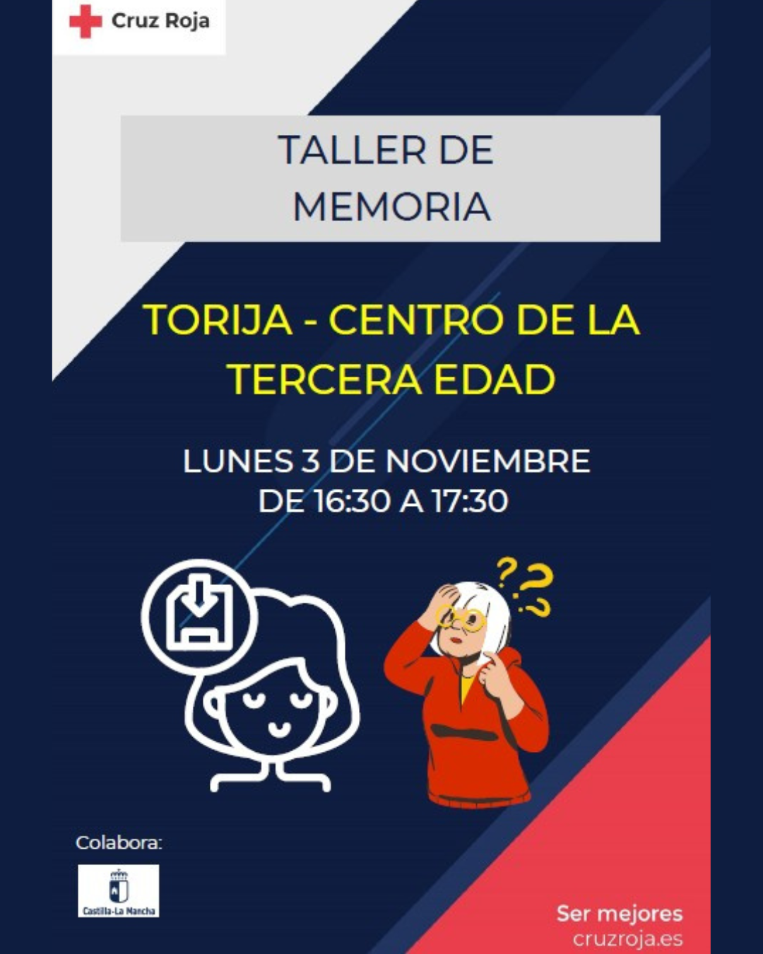 Este próximo lunes 3 de noviembre se llevará a cabo un nuevo taller de memoria dirigido a personas mayores de 65 años en Torija, enmarcado en el Programa de Participación Social. La iniciativa busca promover el envejecimiento activo, fortalecer las relaciones sociales y reducir la soledad no deseada, especialmente en entornos rurales.