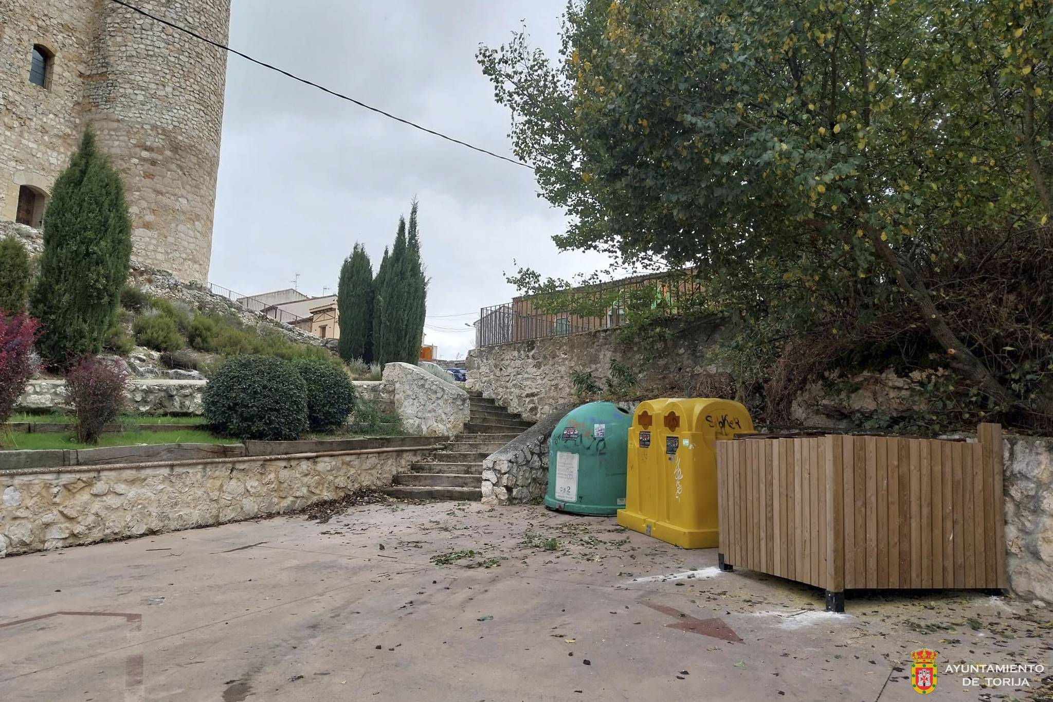 Concluidas las obras de asfaltado en la calle, y con el objetivo de mejorar la higiene y molestias para los vecinos, el Ayuntamiento ha procedido a la reubicación de los contenedores de reciclaje, así como los de materia orgánica y residuos sólidos urbanos (RSU), se encontrarán situados de forma permanente en la zona superior del aparcamiento del Castillo de Torija.