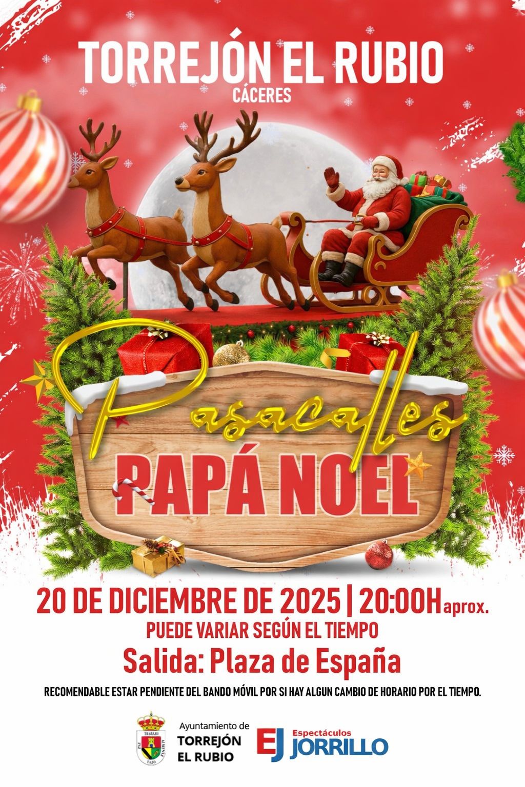 Se hace saber que mañana día 20 de diciembre se realizará un pasacalles donado por Espectáculos Jorrillo para ir abriendo camino a la navidad.