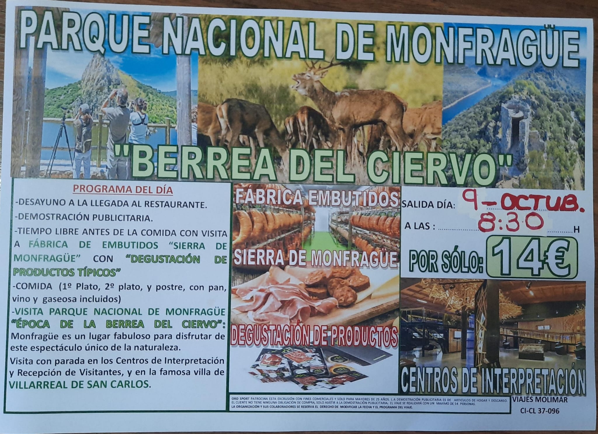 Por falta de excursionistas para la excursión del día 9 a Monfragüe , se cambia al lunes día 13, nos unimos con Cuacos y Garganta.