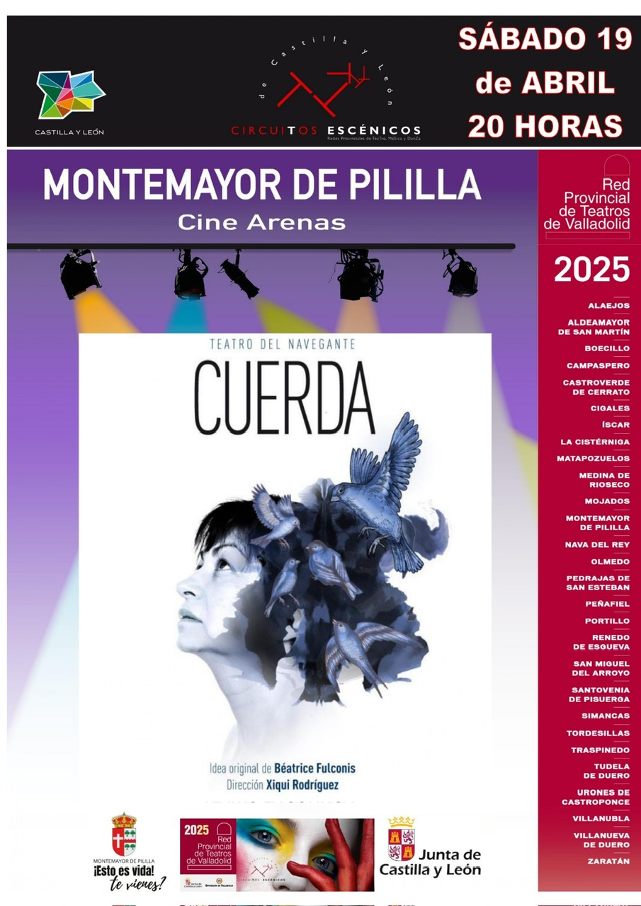 Sábado 20 horas - Cine Arenas - Espectáculo teatral de Circuitos escénicos de Castilla y León2025-04-17 20:39:38CulturaY para completar este Sábado festivo, en nuestro Cine Arenas, para nuestra gente, y visitantes en estos días especiales, uno de los Espectáculos teatrales más valorados de las últimas temporadas de Circuitos escénicos de Castilla y León.