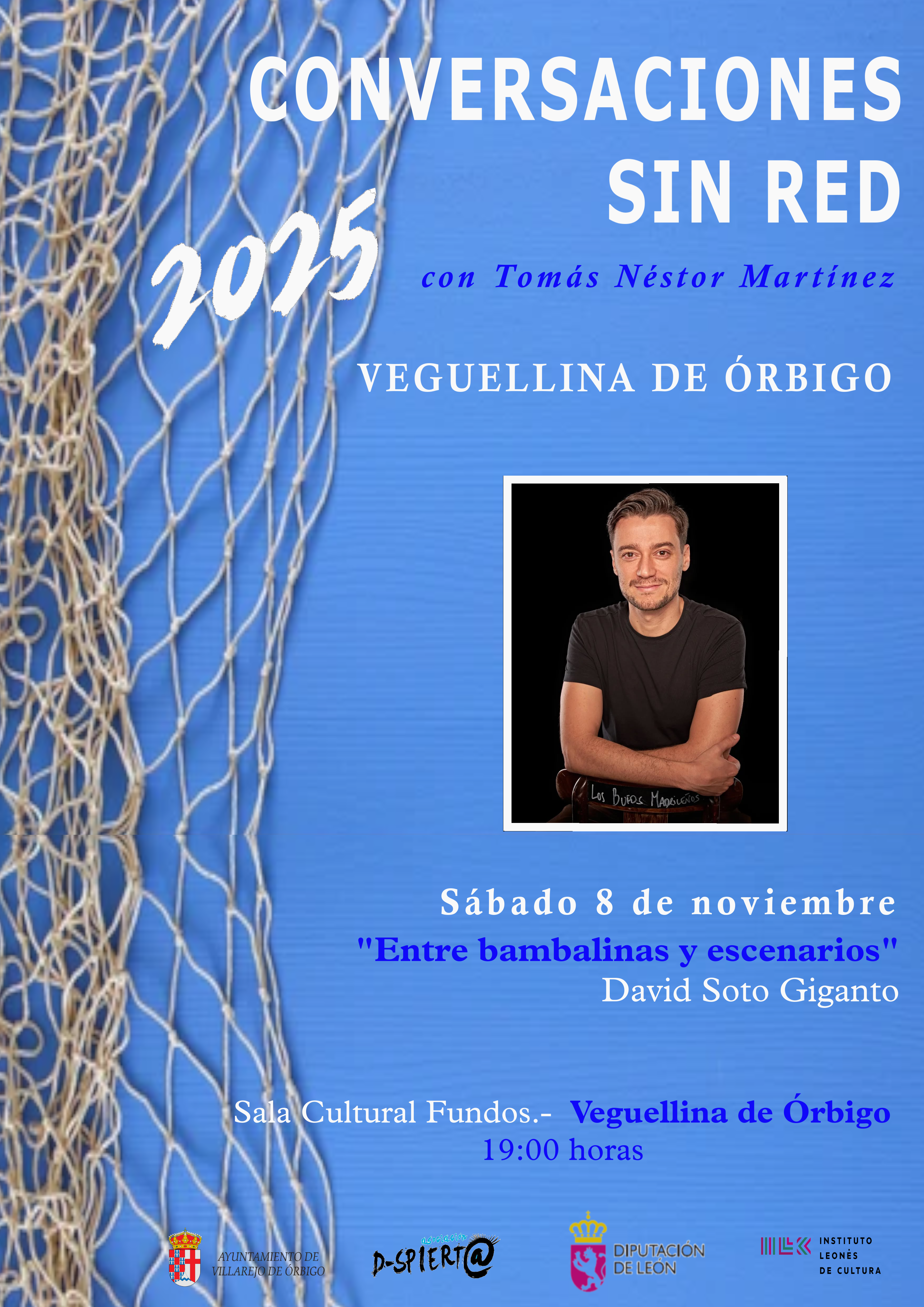 El próximo sábado 25 de octubre, a las 19:00 horas en la Sala Cultural Fundos de Veguellina de Órbigo, tendrá lugar la primera de las "conversaciones sin Red", organizadas desde el Ayuntamiento de Villarejo de Órbigo, en colaboración con la Asociación D-spiert@.