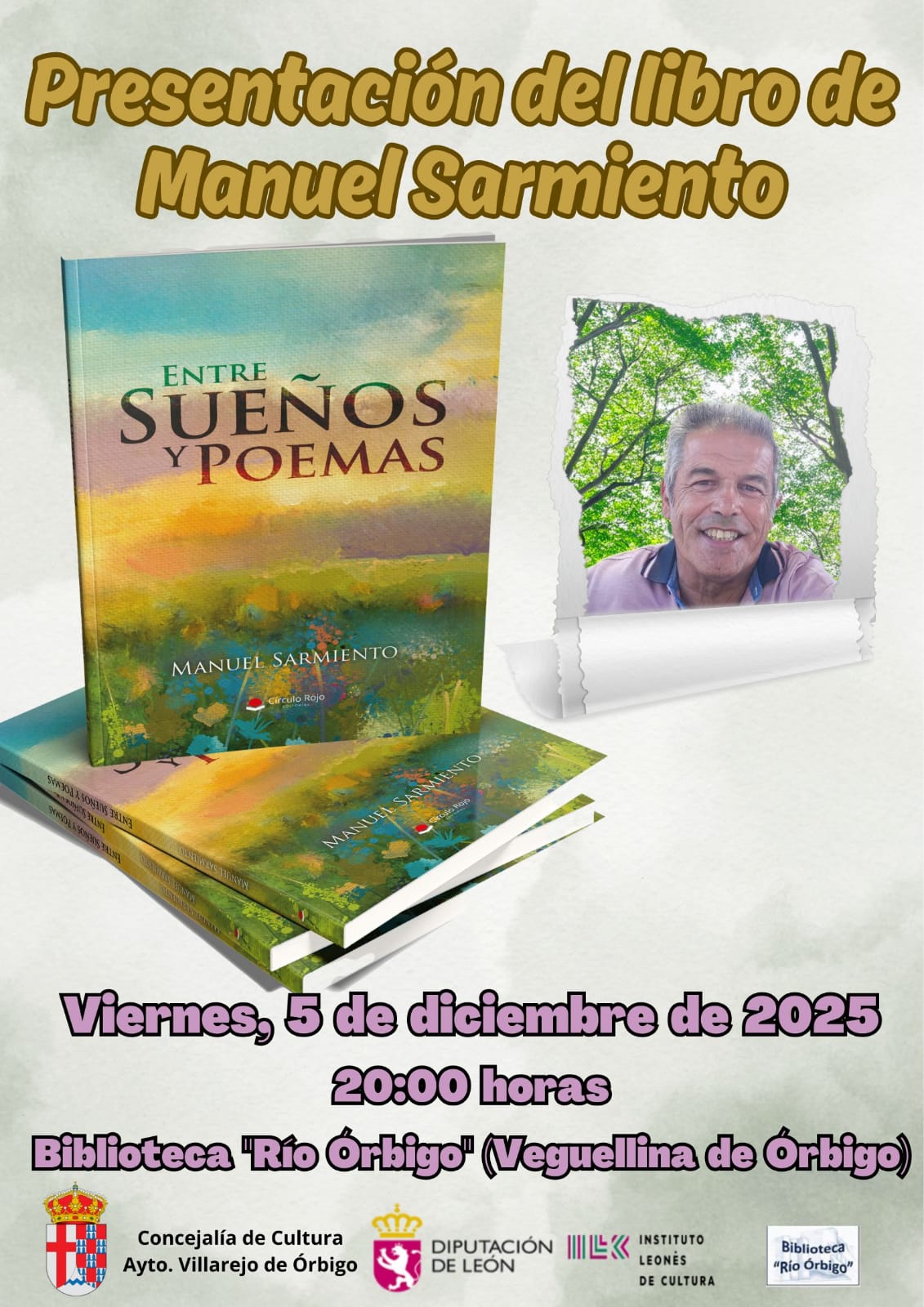El viernes día 5 de diciembre tendremos la presentación del libro "Entre sueños y poemas" del escritor Manuel Sarmiento en la Biblioteca Municipal "Río Órbigo" de Veguellina de Órbigo.