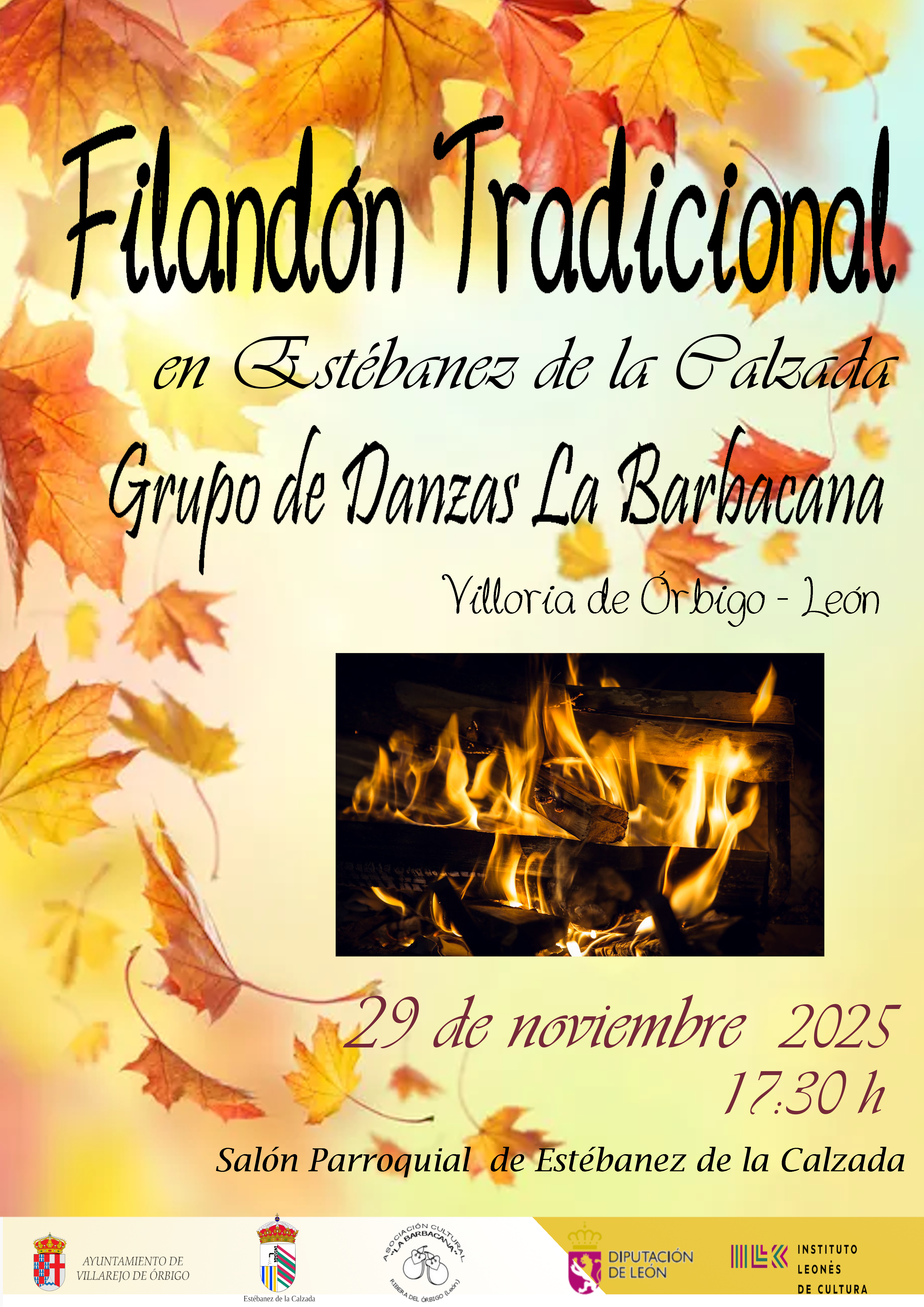 El próximo sábado 29 de noviembre el grupo de danzas La Barbacana de Villoria de Órbigo, realizará un Filandón Tradicional en el Salón Parroquial de Estébanez de la Calzada, dentro del acuerdo de colaboración entre esta entidad y el Ayuntamiento de Villarejo de Órbigo.