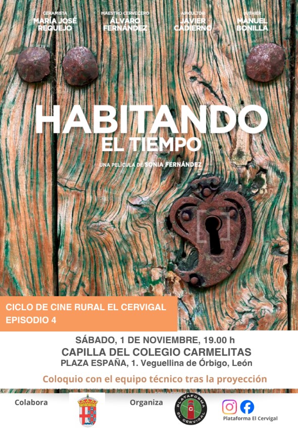Este sábado 1 de noviembre a las 19:00 vamos a continuar el ciclo de cine sobre temática rural, organizado por la plataforma "El Cervigal" de Veguellina de Órbigo en colaboración con el Ayuntamiento de Villarejo de Órbigo, en la Capilla de las Carmelitas de Veguellina de Órbigo. Sonia Fernández nos presentará el documental “Habitando el Tiempo”