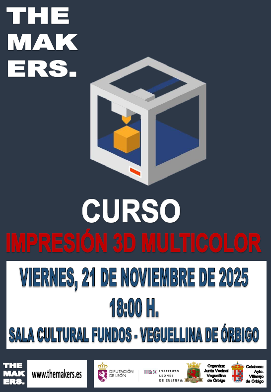 El viernes día 21 de noviembre podremos disfrutar de un curso de impresión 3D Multicolor organizado desde la Junta Vecinal de Veguellina de Órbigo en colaboración con la Diputación de León, el Instituto Leonés de Cultura y el Ayuntamiento de Villarejo de Órbigo.
