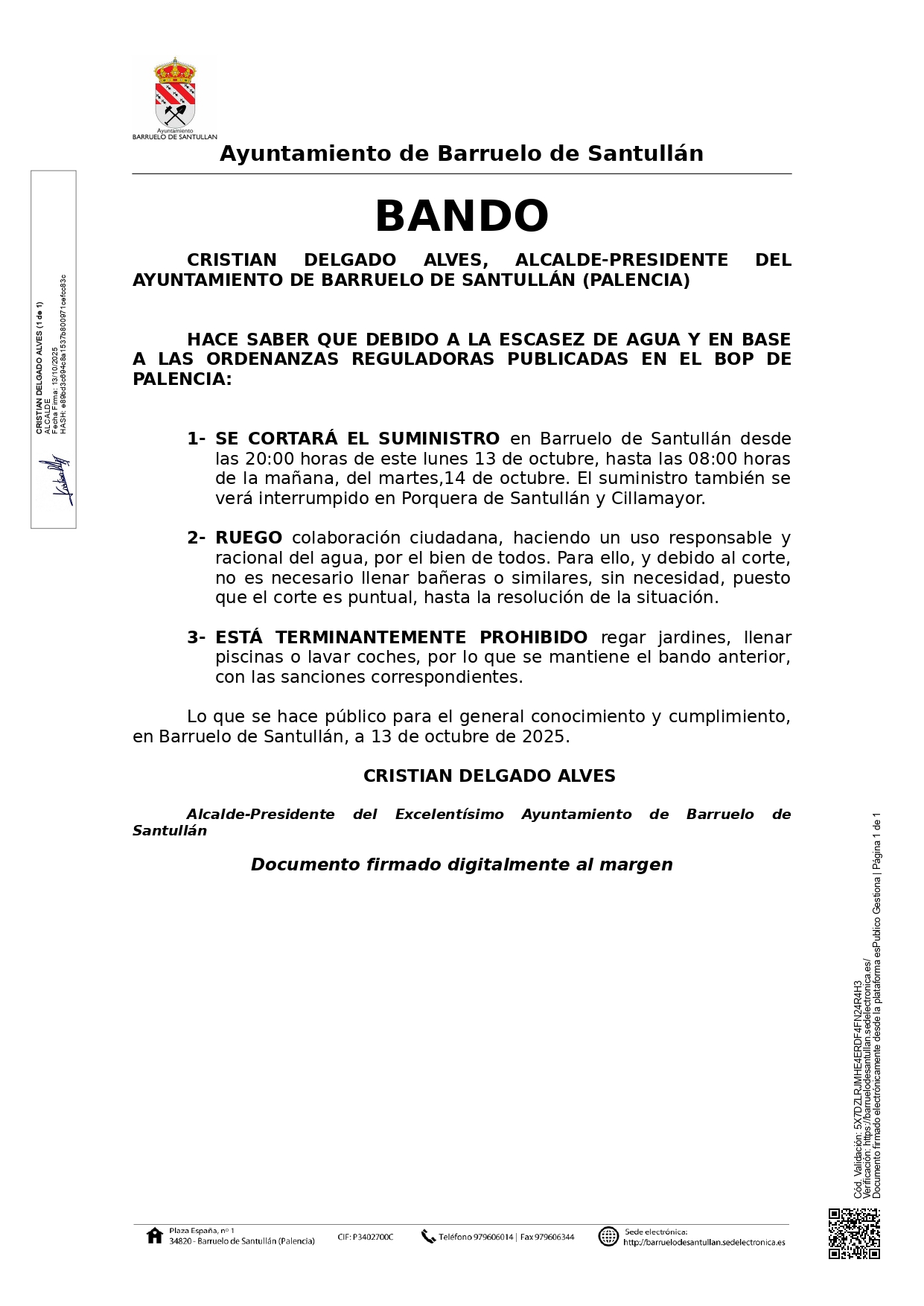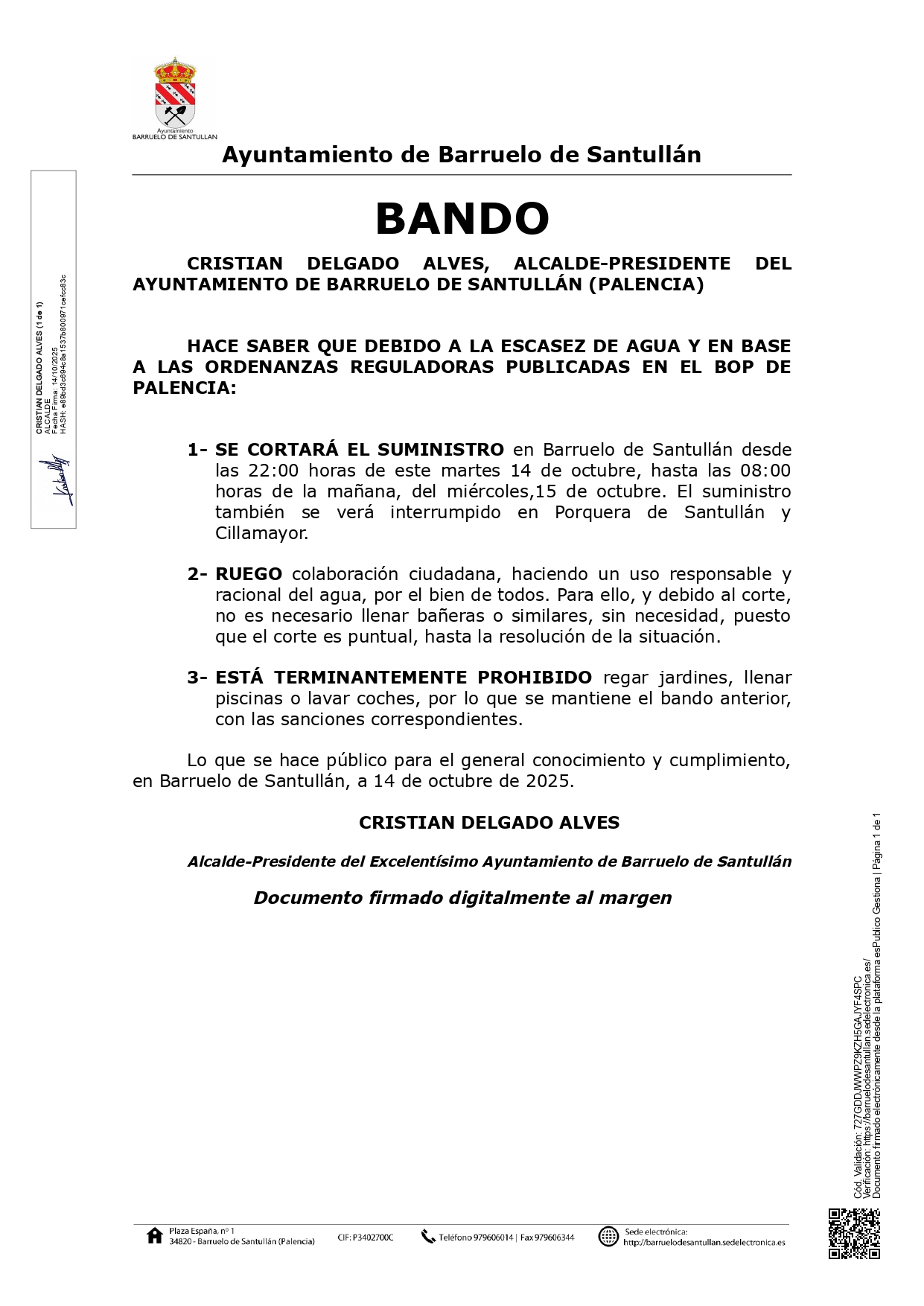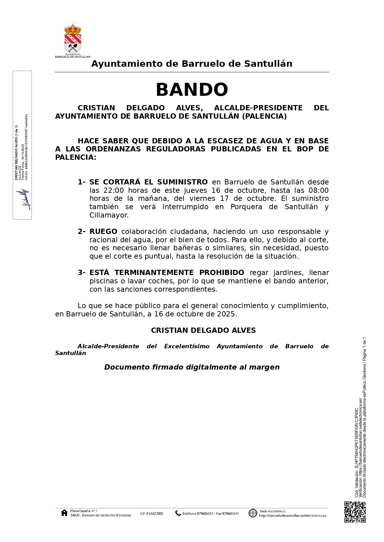 Pese a los esfuerzos, y principalmente debido a la avería de este fin de semana, en el Barrio San Juan, hay que adoptar la siguiente medida. Desde las 20:00 horas y hasta las 08:00 de la mañana se cortará el suministro de agua, por la situación de nuestras reservas y para garantizar el suministro durante el día. Lo lamentamos muchísimo, y esperamos que la situación se resuelva lo antes posible. Solicitamos colaboración ciudadana para ello: cada gota cu(...)