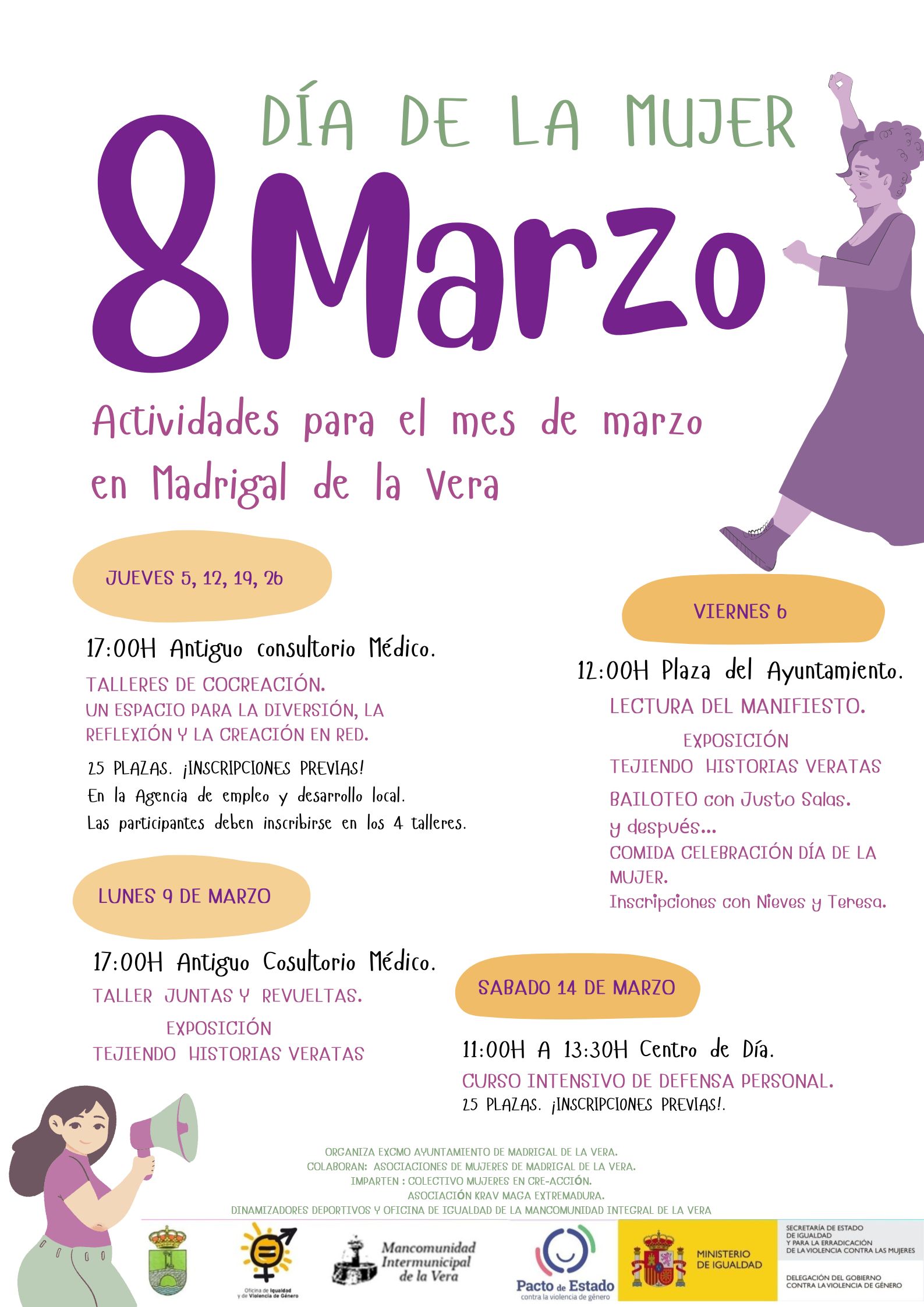 El Excmo Ayuntamiento de Madrigal de la Vera, como cada año, celebra el día internacional de la Mujer con talleres, actividades y lectura del manifiesto.