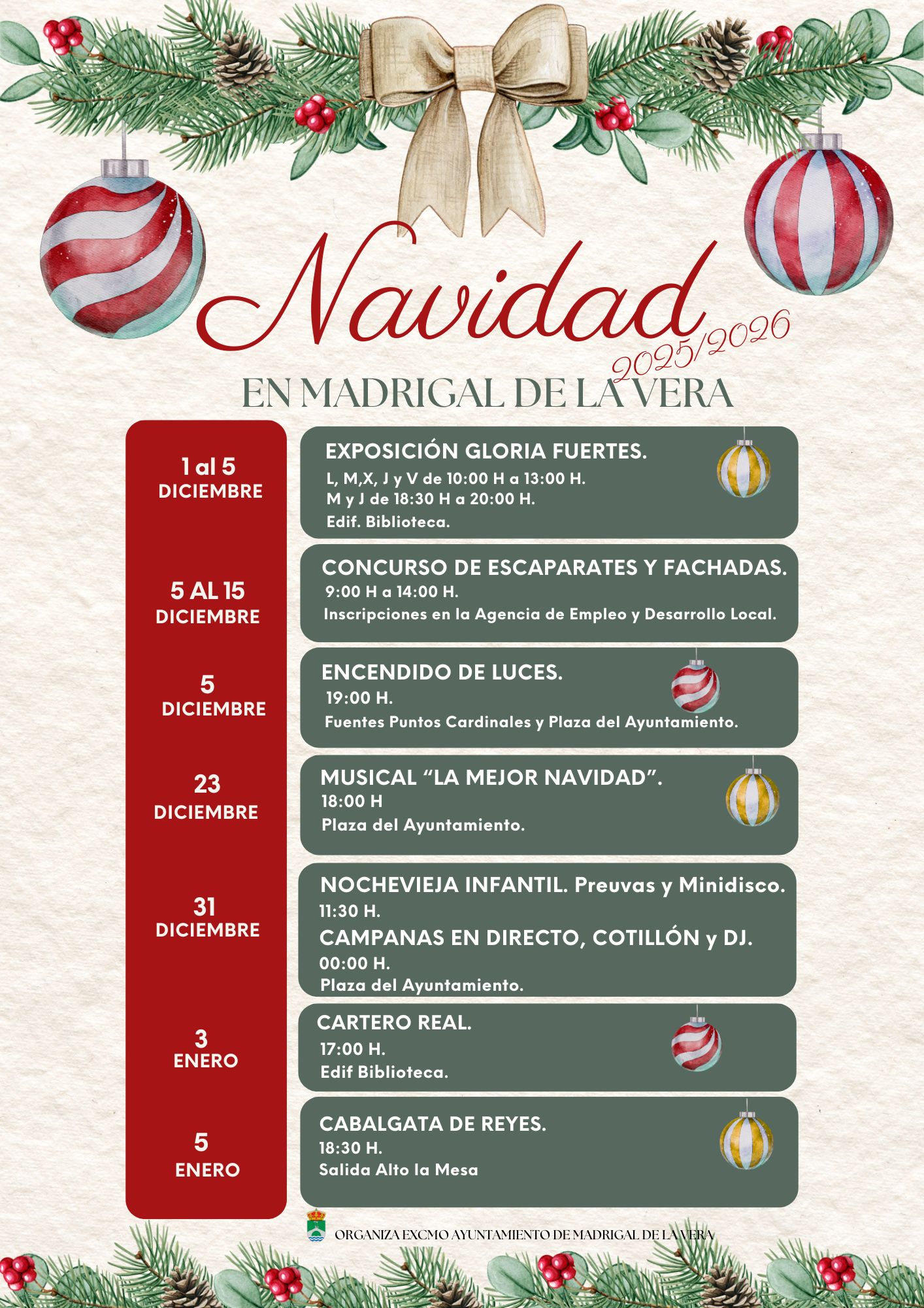 El Ayuntamiento de Madrigal de la Vera invita a toda la ciudadanía a disfrutar de la Navidad 2025/2026.