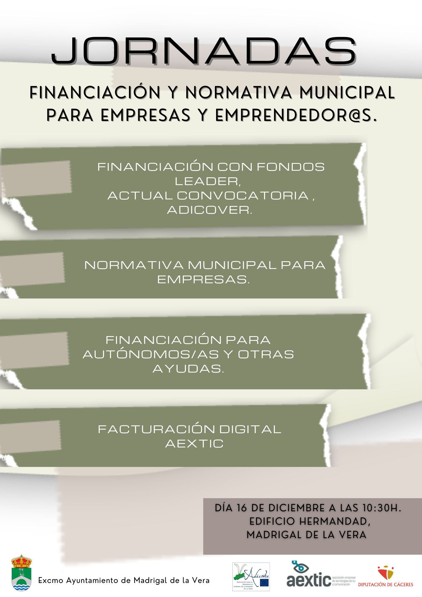 Jornadas sobre financiación y normativa municipal para empresas y emprendedor@s en Madrigal de la Vera